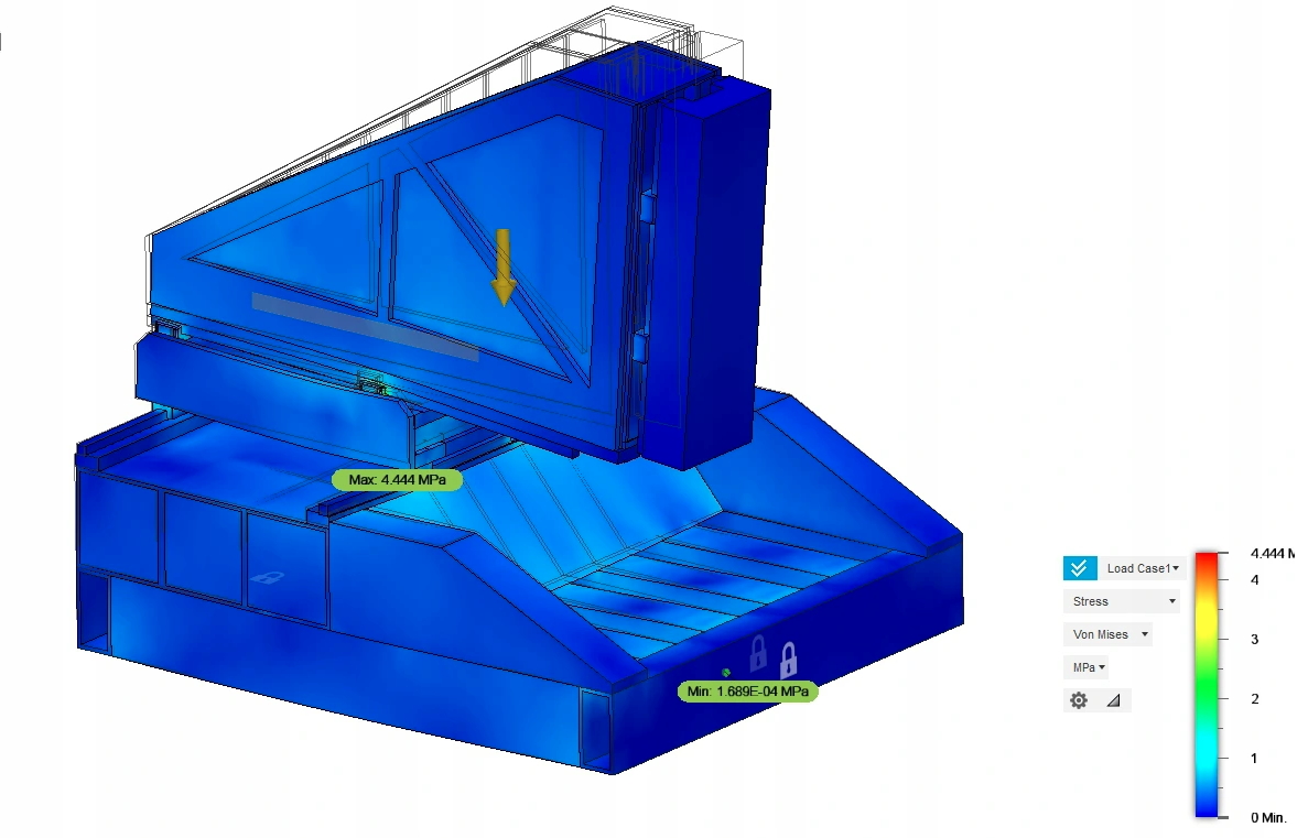 - При разработке наших машин мы придаем большое значение оптимизации конструкции с точки зрения жесткости и вибрации, чтобы достичь максимальной жесткости и минимальных вибраций во время обработки с минимально возможным весом.