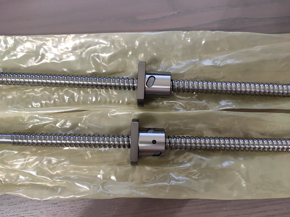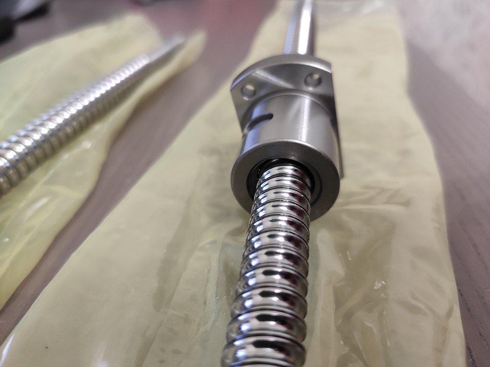 Привезли ШВП. Долго искал в интернете хоть какие-нибудь фото этой модели гайки, поскольку в каталогах только схематичные рисунки. Из недостатков - нет масленки и пыльников, но в наличии были только эти. Гайка сидит плотно, не болтается, осевой люфт не чувствуется (продавец сказал, что эти винты поставляются с преднатягом P1), в вертикальном положении гайка медленно скатывается с винта, без закусываний. По ощущениям годная штука, люфт замерю, как поставлю. Пыльник тоже сделаю, не выглядит большой проблемой.