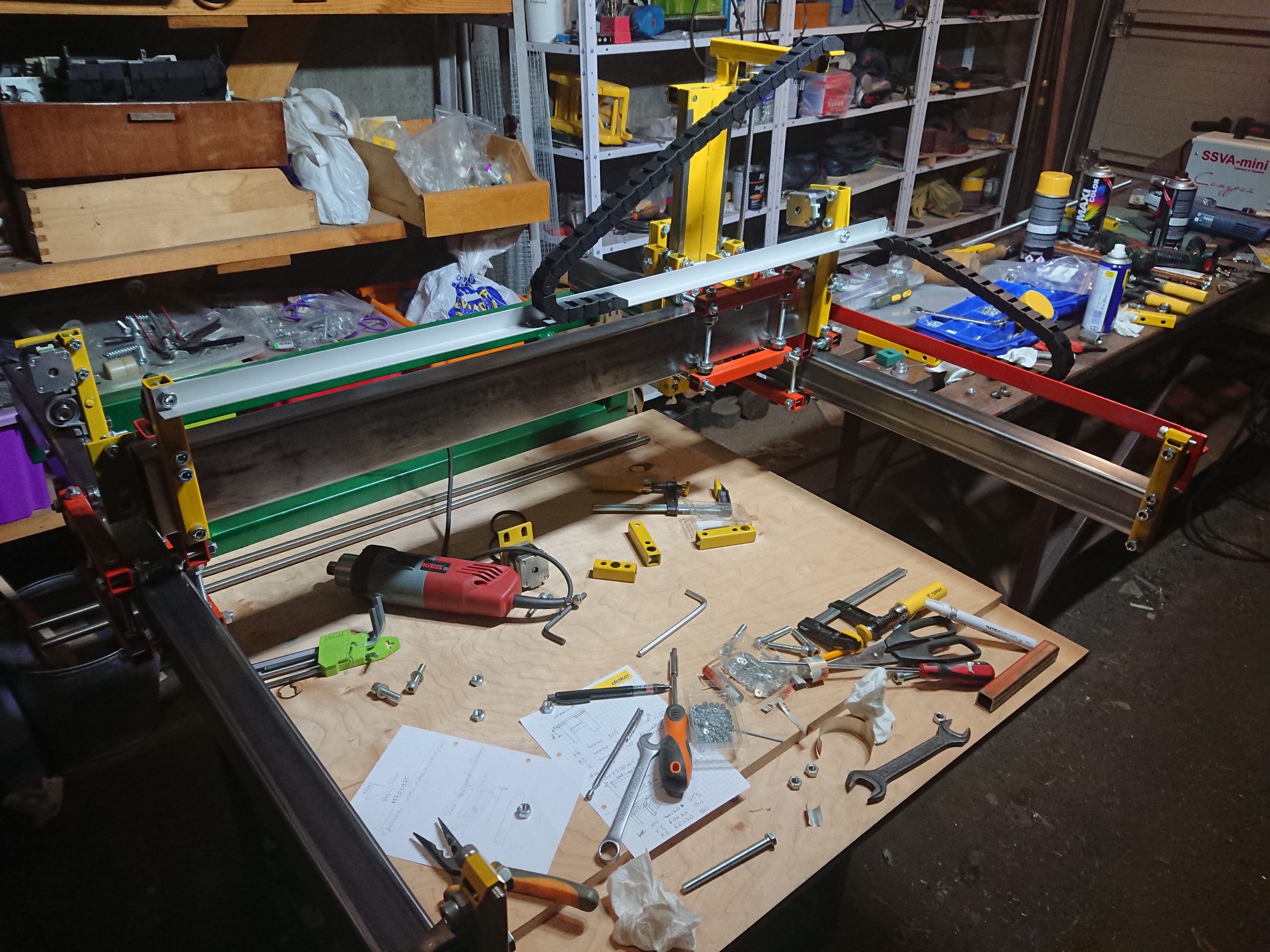 именно так и использую часто, отогнал портал в дальне положение и вполне достаточно доступа с торца, с боков зачам залазить? в будущем вообще планирую приставить к стенке и справа слева поставить верстаки. фото со времен постройки первого станка, но идея думаю понятна.iMaks-RS писал(а): Не согласен. Вы рассматриваете доступ как к станку.. но в реальной жизни, когда станок не работает - а это будет примерно 90% времени... стол станка очень часто используется как верстак...