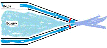 по черной трубке подается воздух, по внешней (гибкой) вода