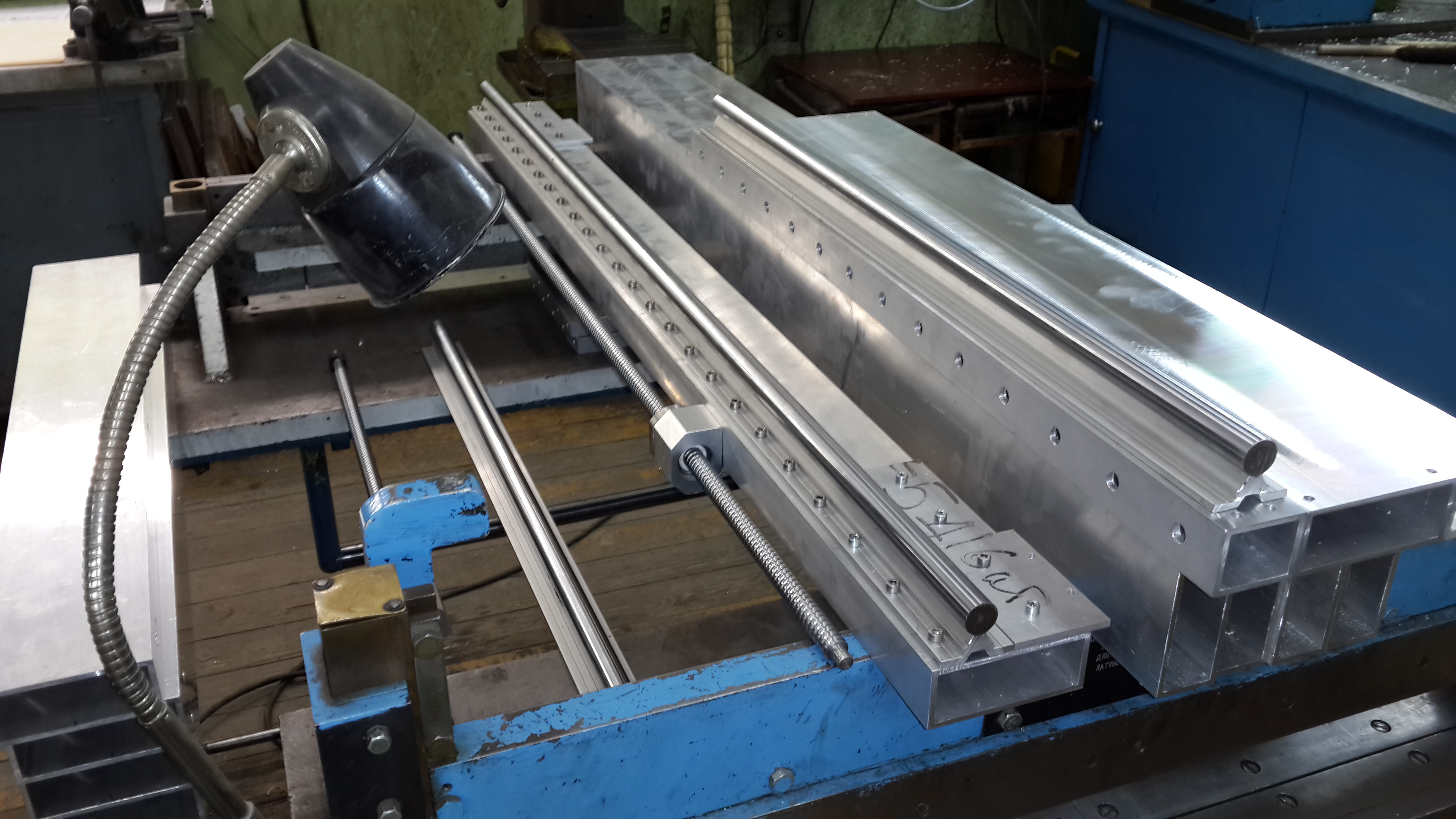 Сделал балку Y из профилей, шлифанул плоскость под рельсы.
