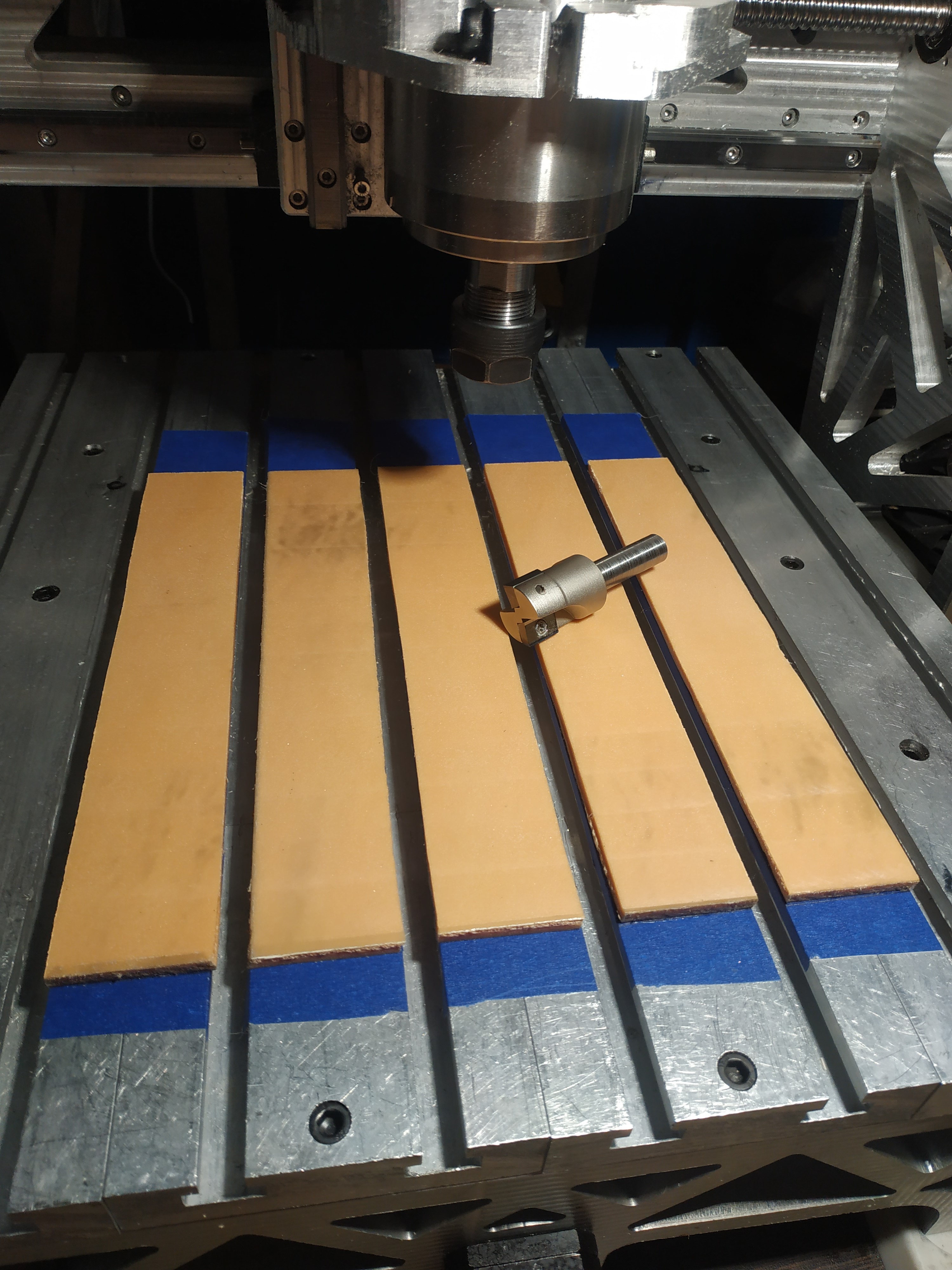 Купил себе Винипласт, твердая штука. Поклеил 5мм фрезернул с двух сторон по 0.3мм. Приклеил скотч на стол и на Винилпласт и между собой космофеном.