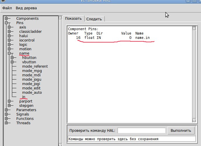 теперь наша группа "name" должна появиться в halshow ,а в ней наш пин "in"