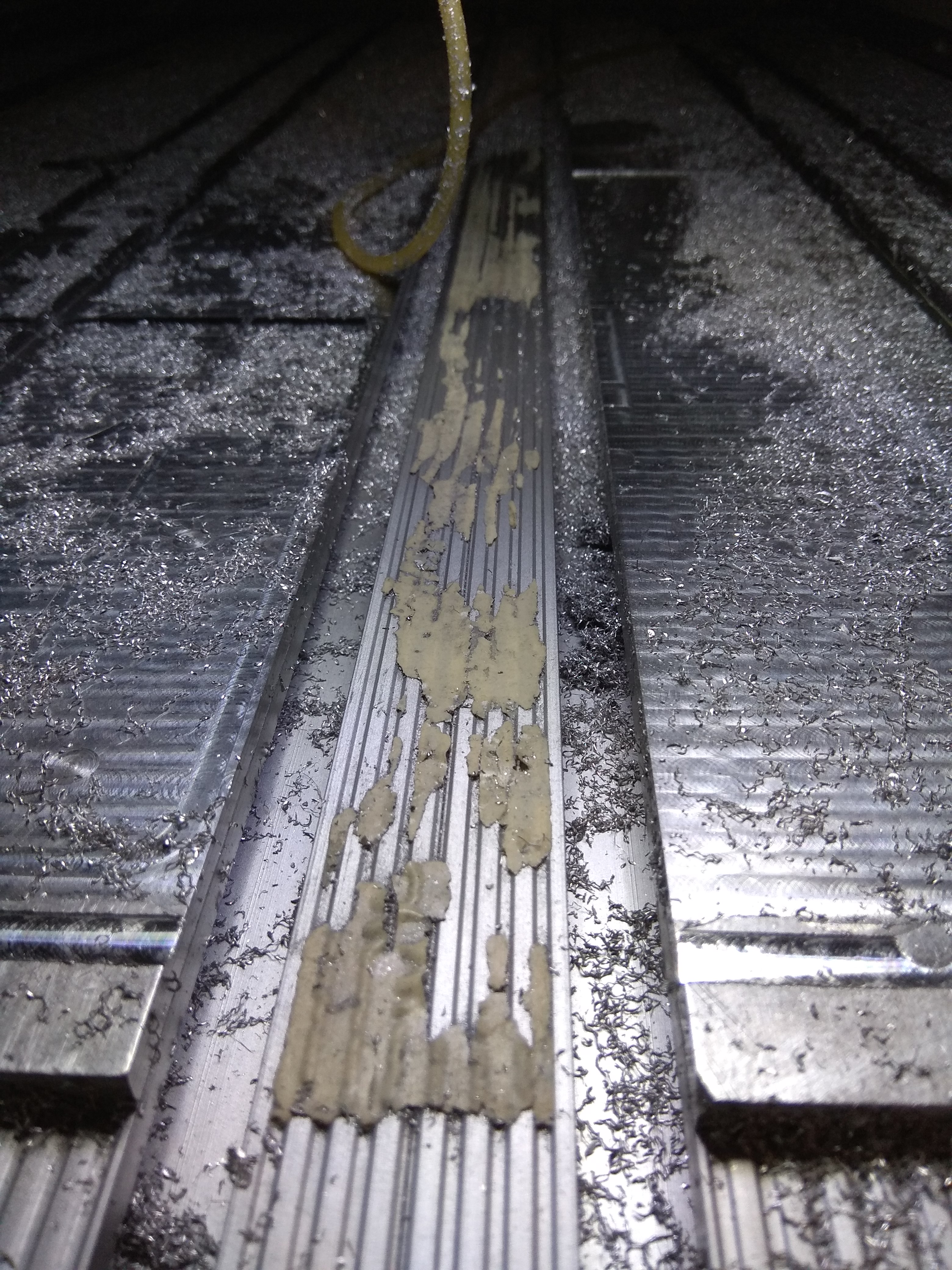 Всех приветствую! После определенного времени эксплуатации станка начали отклеиваться алюминиевые полосы жертвенного стола, похоже что отклеиваться они стали из за постепенного попадания СОЖ.