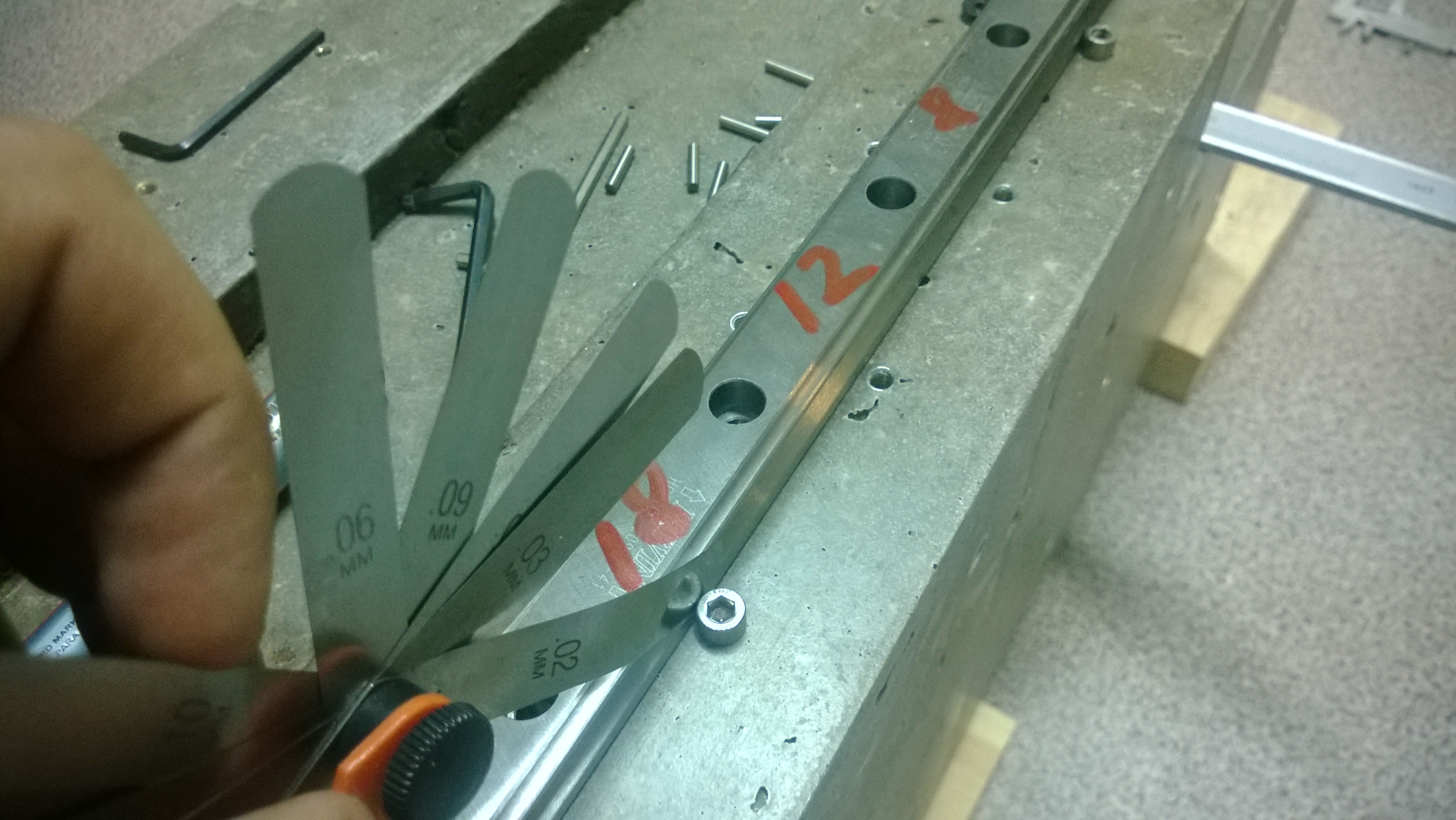 А какой рельс должен быть? Рельс достаточно ровный. Если рельс будет кривой, то притянув к ровной поверхности он будет кривой. Сейчас пытался установить мастер рельс по другому рельсу, который просто лежал на станине. Для этого я взял 3 разных рельса, и оказалось что +-0,02 мм ровные рельсы (Hiwin HGH20). Короче получилось выставить по рельсу в +-0,03 мм. Резьбовой люфт какраз помог!