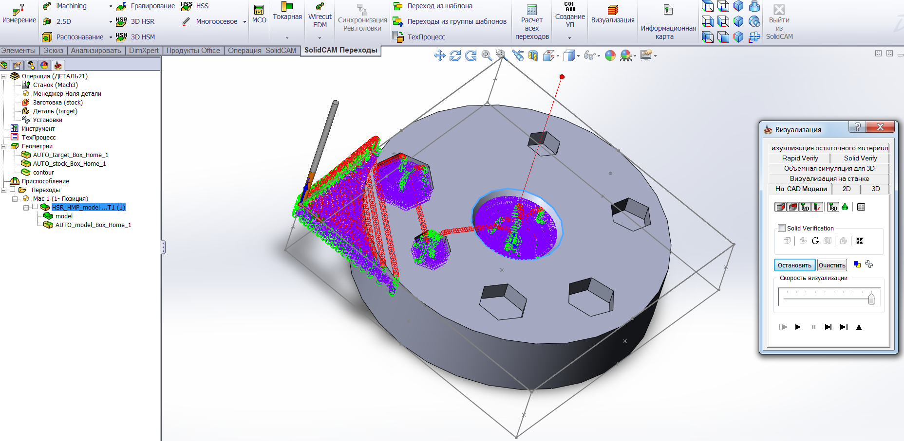 делал я как-то раз сразу по 13 деталек, сделал в солиде державку под 13 штук (выточил две, пока одна работает, на другой детальки меняем), в ней же добавил мои детальки, и сделал программу обработки только их, размер попал четко.tmtm писал(а):а в солиде как то нельзя это сделать?