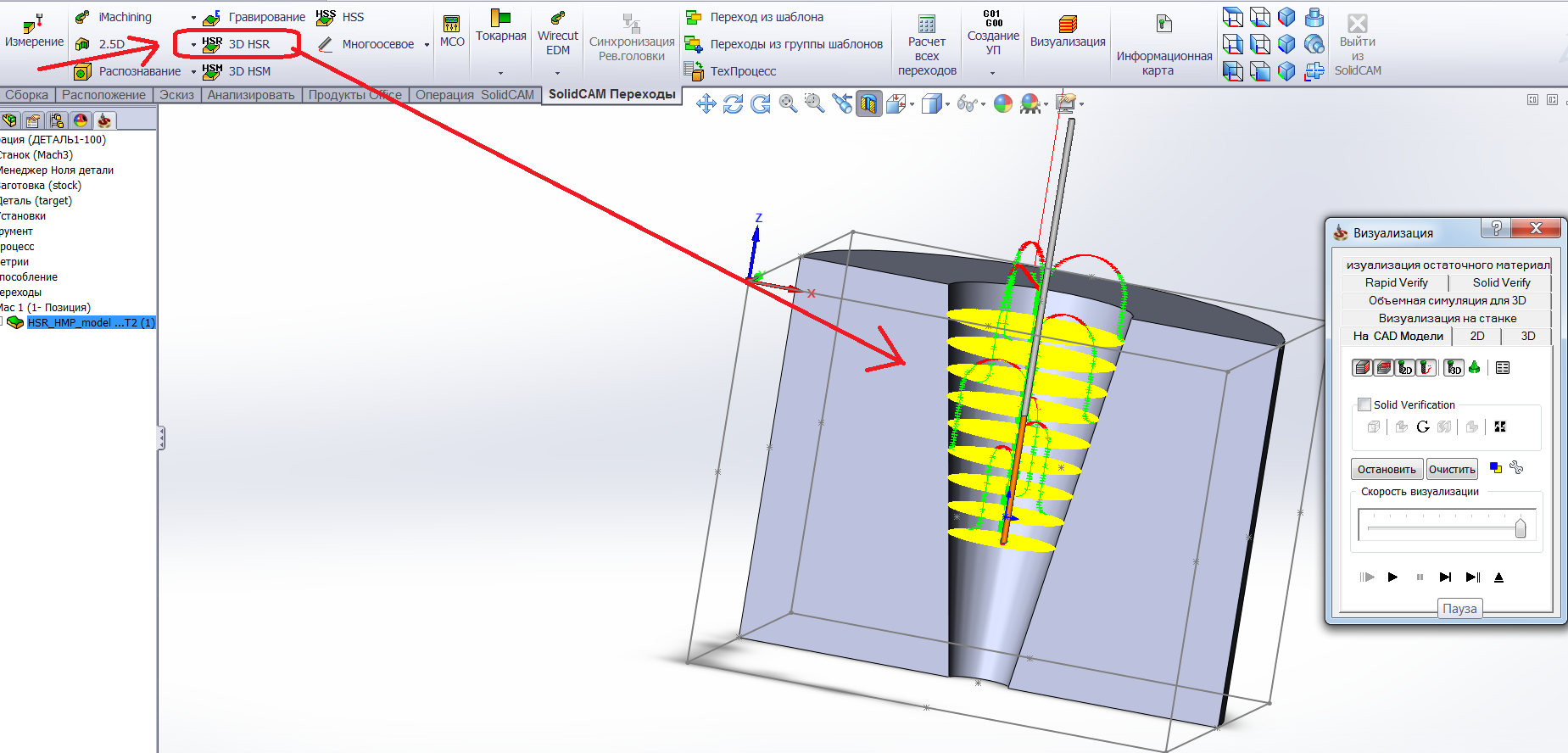 Поискал на тытрубе уроки с использованием 3D HSR и 3D HSM, так эти редиски не показывают как выделяли нужные участки, а использовали заранее заготовленные стратегии обработки и только показывали как эффективно ходит фреза. Подозреваю, что я как-то неправильно пытаюсь выделить нужный мне участок. Но как сделать это правильно я найти не могу.
