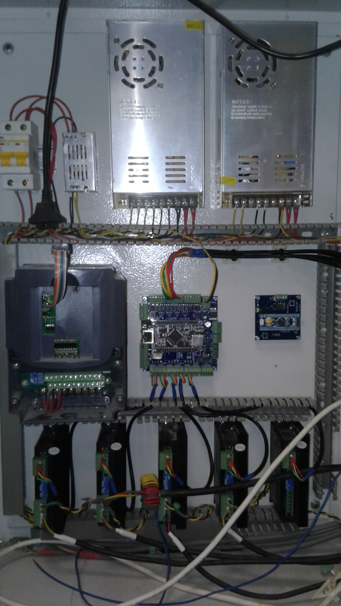 Конец монтажа. Установлены эзернэт кабель, питание приёмника, кабель от MPG пульта, управление шпинделем по аналоговому сигналу