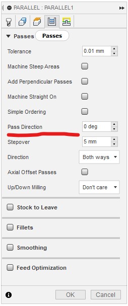 А изменение угла просто повернёт направление построения параллелей для операции parallel