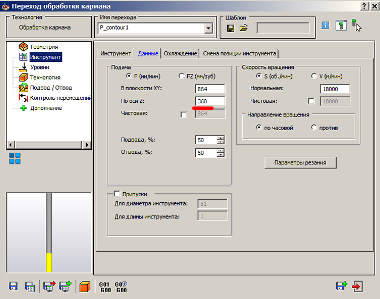 подачи по Z - смотрите есть указывается в мм на зуб. а есть в процентах от горизонтальной подачи.