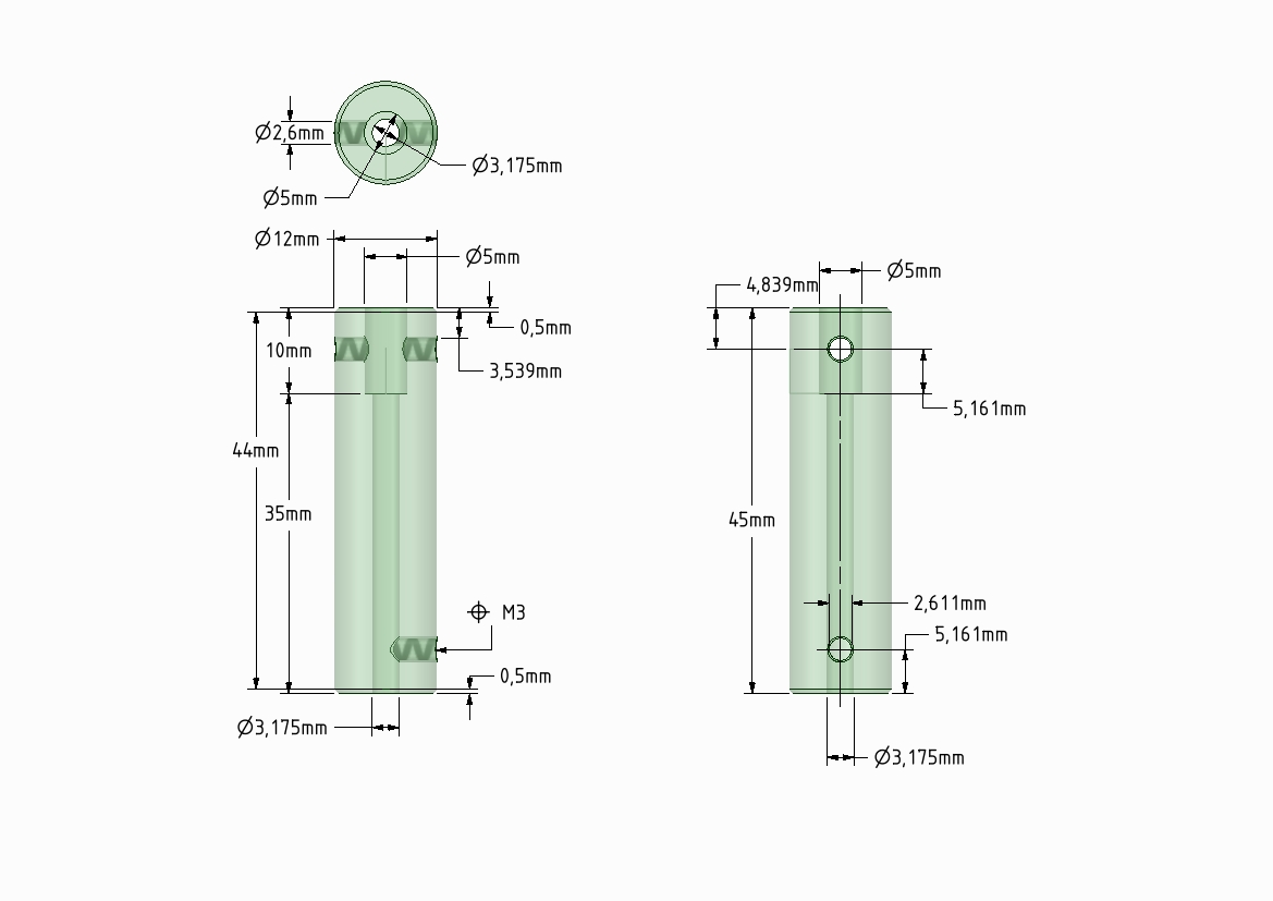 Только я сверлил 3.2 так как точного сверла нет но еще пришлось немного хвостовик притереть в отверстии чтобы свободно ходил.