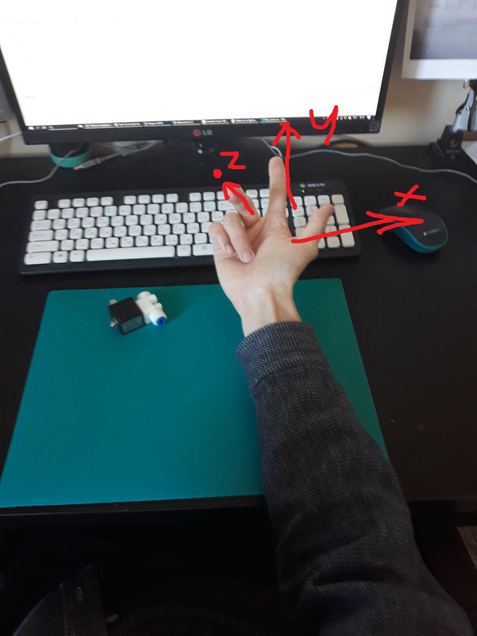 Ну так это правило никак и не указывает куда осям располагаться на станке. Оно лишь показыввает взаимное направление осей, чтобы не путать куда положительные координаты направлены(а то можно Y+ Z+ оставить, а X инвертировать, и будет всё зеркально)Пповерните вы руку на 90гр, и направления поменяются, но их взаимное расположение останется тем-же. Вот вытягиваю я руку перед собой, и боольшой палец(Х) у меня смотрит вправо. Согну руку к себе, и уже он от меня смотрит.