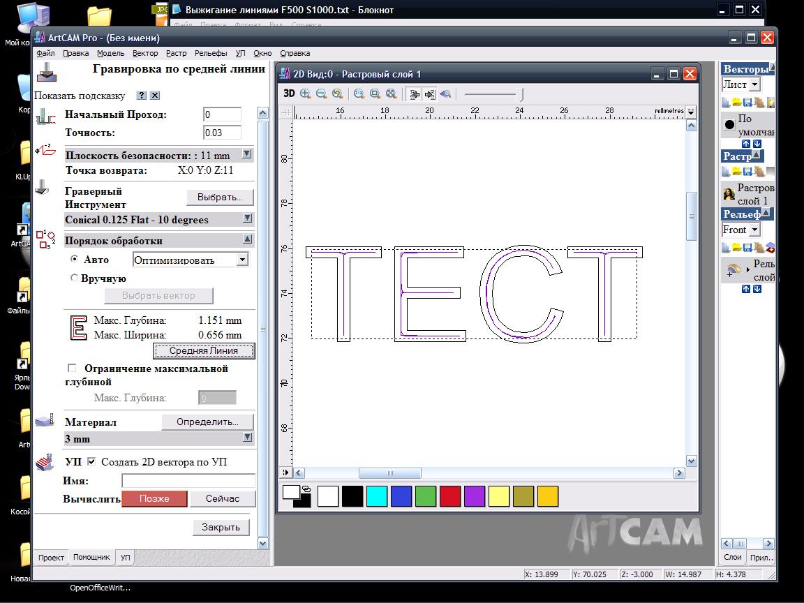 Сергей. Возможно ли применить в программе скелетизации к тексту и вектору, подобно ArtCam-овской средней линии?