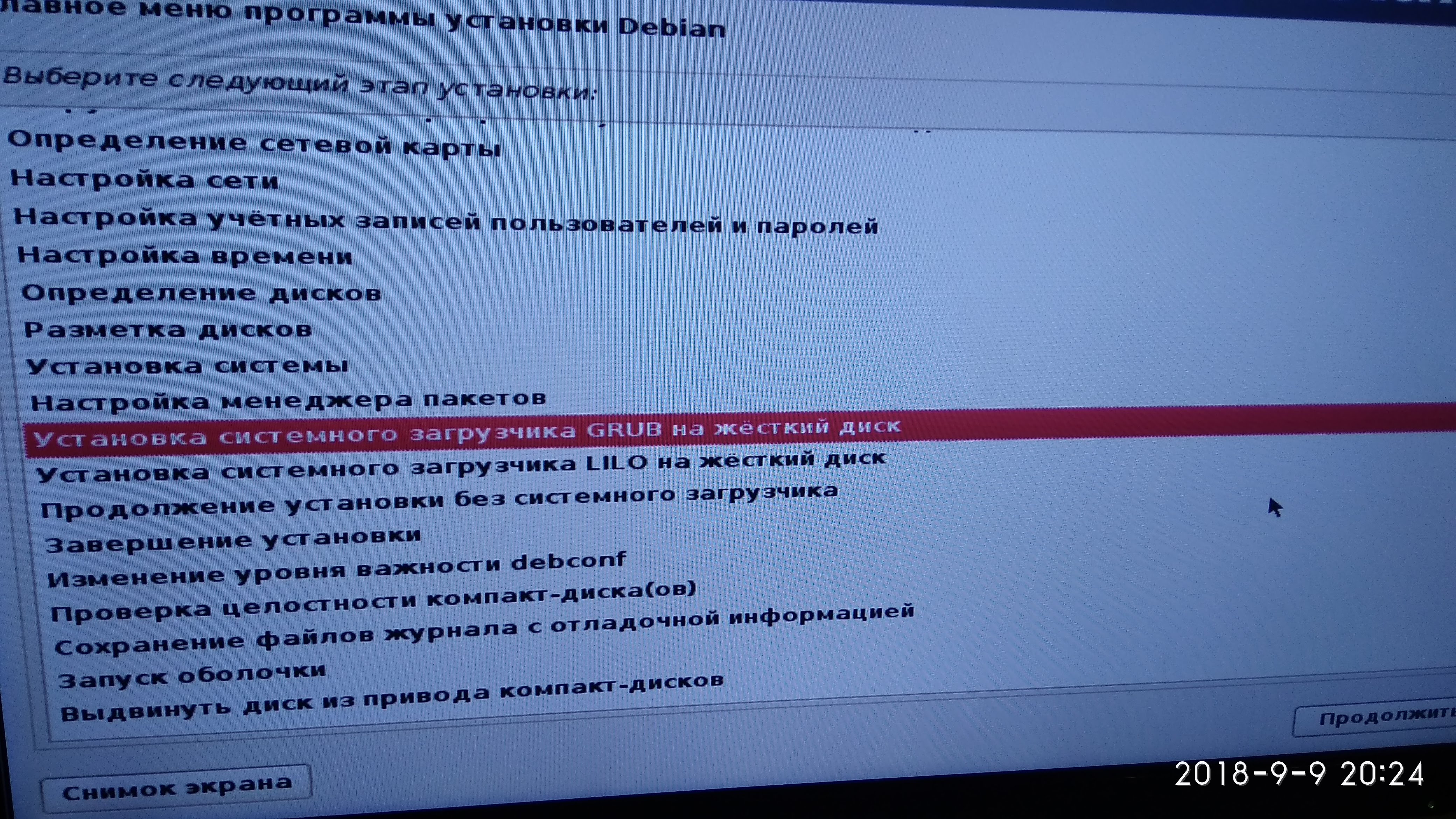 - Загружаетесь с записанного CD или Flash. Выбираете русский язык.