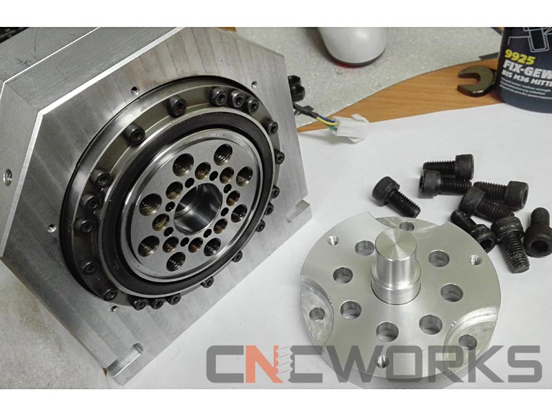 После изучения темы Nic1 (4 поворотная ось), за что ему большое спасибо!, был куплен волновой редуктор Harmonic drive 32-80 с большим перекрестным подшипником.