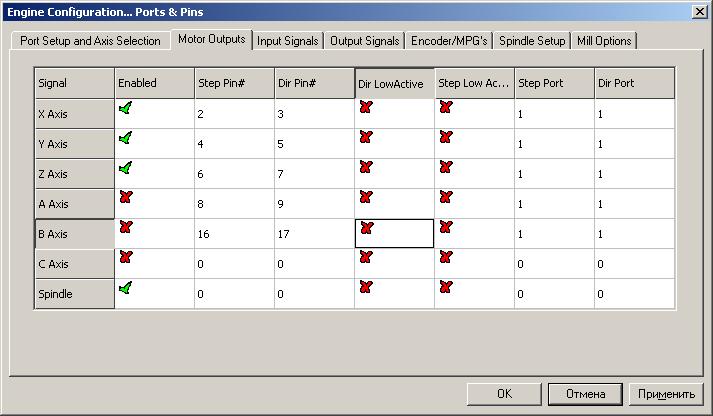 Сигналы на оси B выглядят как положено: короткие импульсы на step и постоянный уровень на dir.