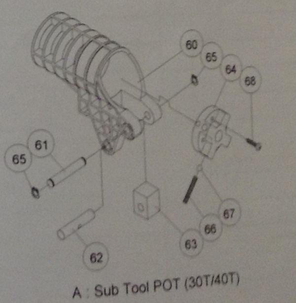 по схеме, на оси 61 идет поворот кармана, за ось 62 "держится" пневмо цилиндр, на всю конструкцию цилиндр один, просто при повороте барабана, нужный инструмент (а именно ось 62) становится напротив захвата пневмо цилиндра, а остальные сидят в спец пазу барабана
