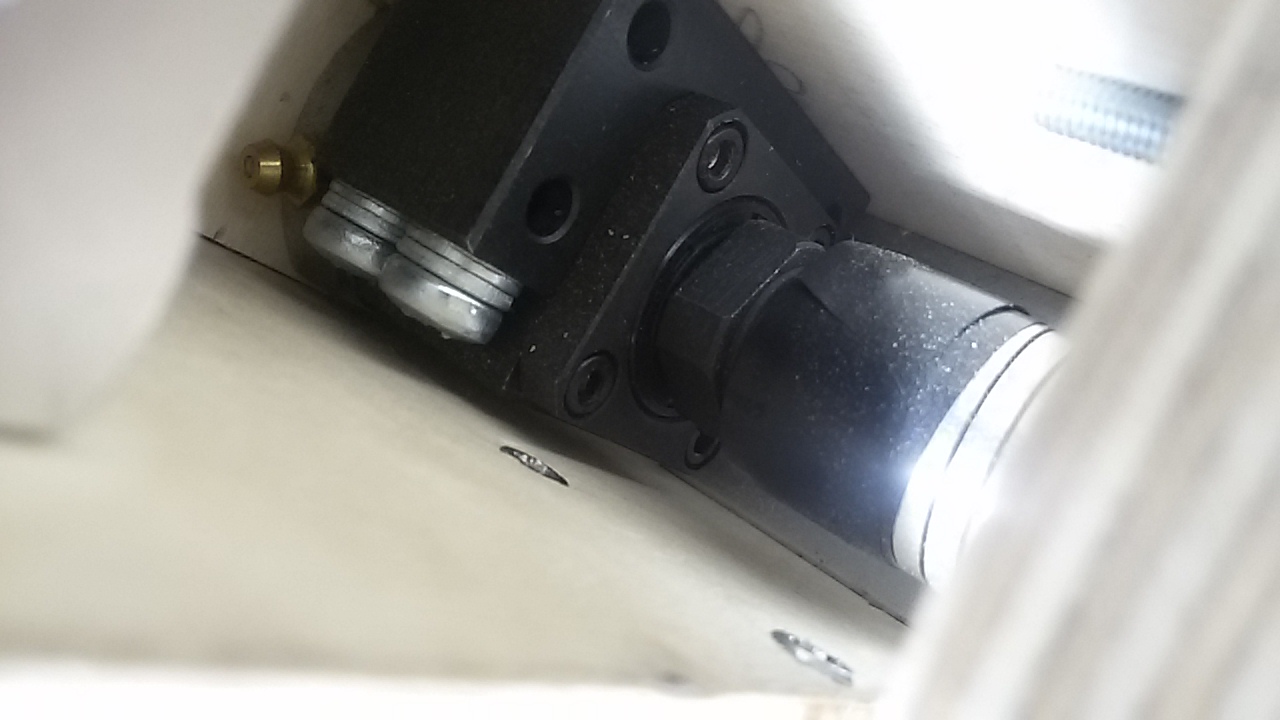 Вот виновница безобразия. Между муфтой и опорой винта. Гайка свободно болталась.