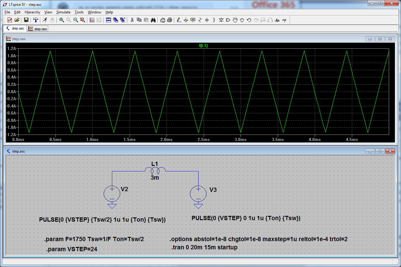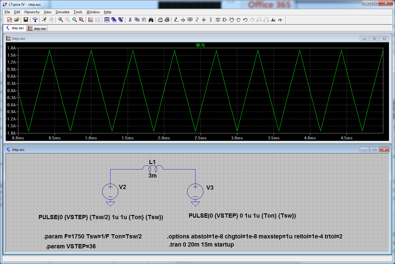 По поводу тока моторов, на скорости 21м/мин, шкивах T2.5 с 16 зубами (=40мм/оборот) получается 8,75об/сек, частота по фазам получается 1750Гц, обмотки имеют индуктивность почти 3мГн. Вот что показало моделирование (во вложении). Треугольная форма - совсем не максимальный момент получается