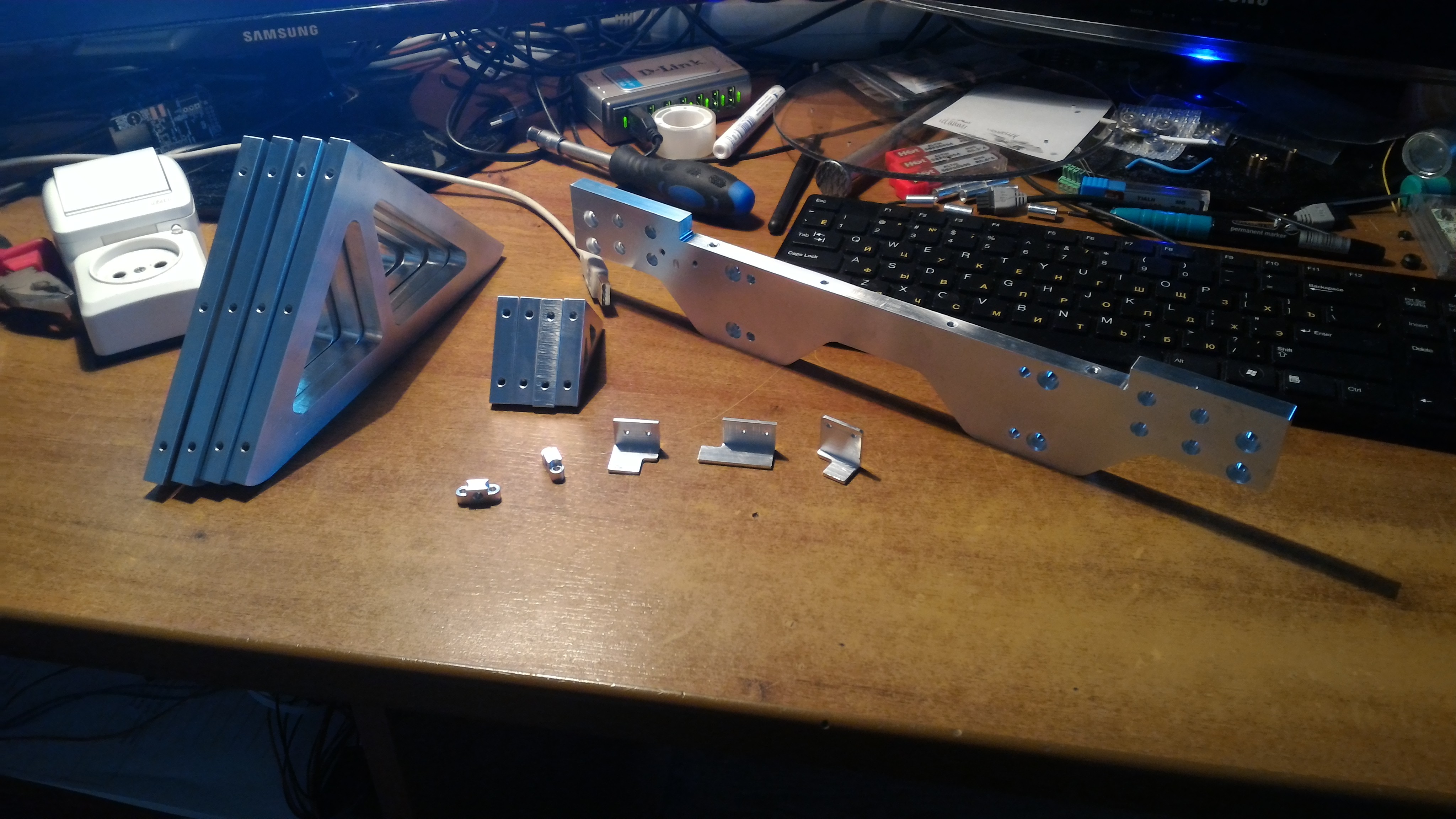 В праздники ещё немного пиланул деталей. Осталось всего 1 деталь выпилить и можно собирать Z со столом и пробовать катать с концевиками и всем остальным. Да посути и напечатать чтото можно будет уже, но хочу ещё электронику если не подчистую перебрать(а этого тоже иногда хочется видя ляпсусы ардуины, рампса и всего остального), но хотя бы как минимум БП разные поставить, симистор добыть надо на нагрев стола(нагреватель взял на 220В).