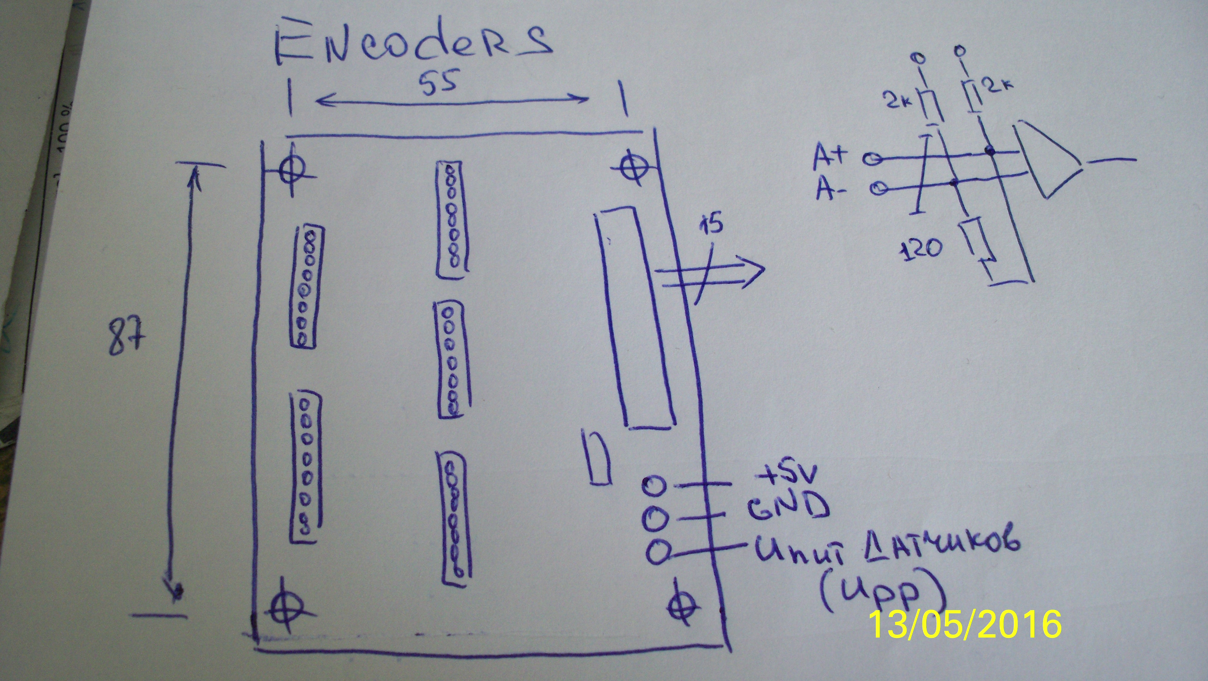 Ну тут просто на каждый енкодер по три типовых дифференциальных усилителей шины.