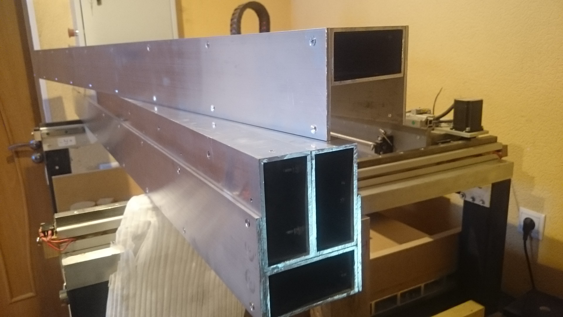 По алюминиевому боксу и полосе, кто хочет, вполне можно склеить вот такую балку, длинной чуть менее метра и 110х200 в сечении.