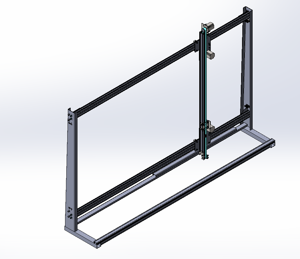 Доброго дня. Проектирую Пенорез для себя. Рабочее поле 1100х2100. Станок состоит из двух независимых стоек. Основная задача по резка пенопласта для утепления дома, изготовление фасадов и т.д.. Станок предварительно состоит из алюминиевого станочного профиля 30х60 и стоек из Ст 3 (фото модели станка ниже). Шаговые двигатели Nema 23 (23HS8430), драйверы двигателей TB6560 и контроллер ЧПУ P5 CNC. Передача станка зубчатый ремень VT-ZR1, перемещение каретка на регулируемых осях. Питание пока не рассчитано. Буду рад критике и советам.