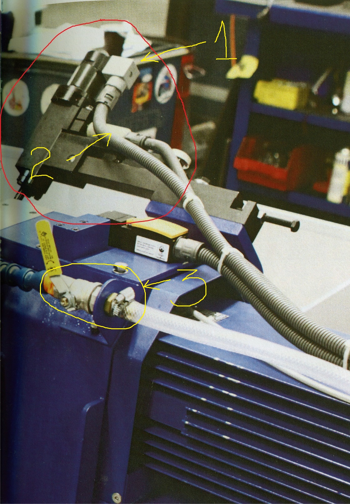По моему мнению поз 1 и 2 являются электрическими проводами в пластиковом защитном рукаве.