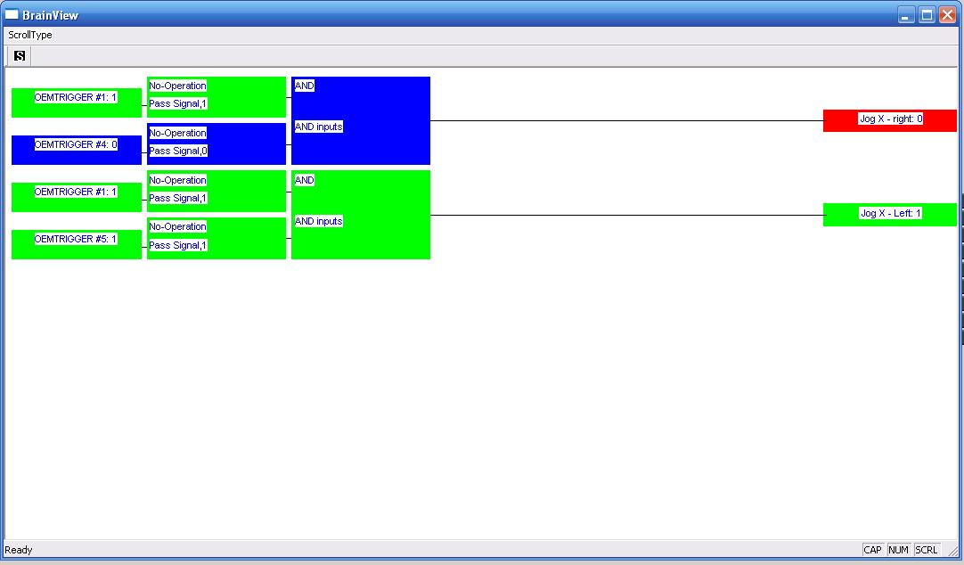 При написании логики в Brain ось продолжает двигаться после отпускания клавиши. При этом при просмотре логики все моргает зеленым как задумано.