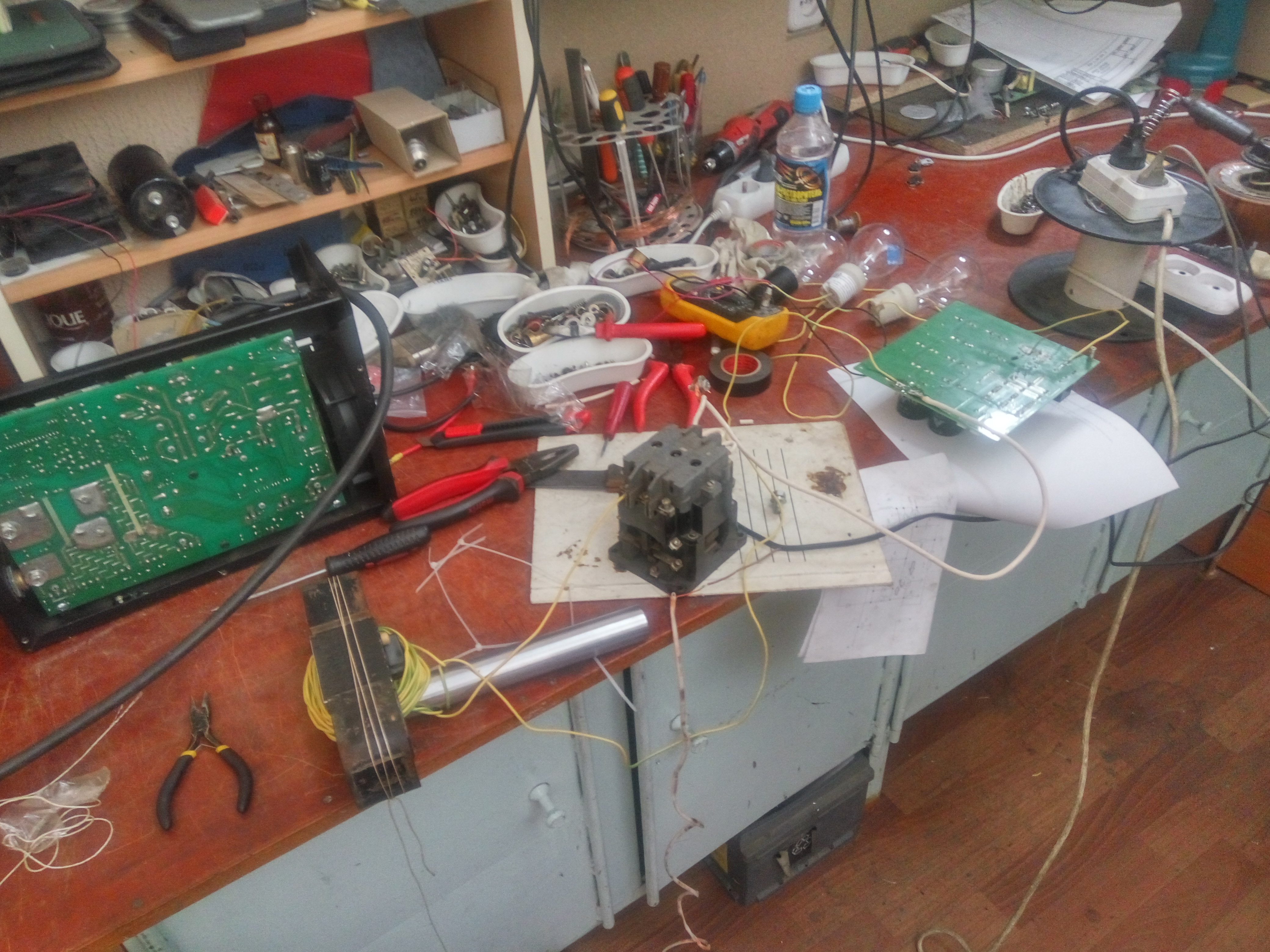 Я этого вначале и опасался, перерыл на месте все, подходящего тиристора или диода не было, поэтому вначале разобрал установку, потом плюнул, и решил попробовать с пускателем. А колебательный контур с такой емкостью, и добротностью катушки, когда там кусок сталюги цельной видимо фиговенький получается :)