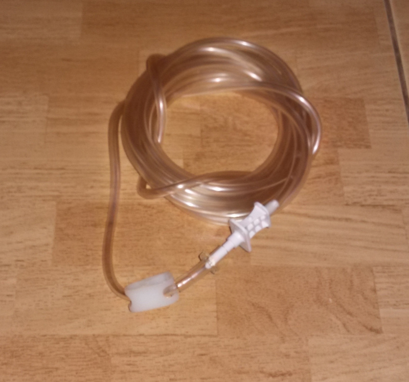 1. Трубка длиной 3.65м с наконечниками, вставляются друг в друга, несколько таких трубок можно легко соединить в одну длинную. 2. Трубка длиной 3.0м с белым наконечником 3. Короткие трубки длиной 0.8м с синими наконечниками 4. Трубка длиной 0.9м с разветвлением (0.4м+2х0.5м)и двумя синими наконечниками. 5. Трубка длиной 1.4м с ответным наконечником для "первой" трубки. На длине 0.7м имеет ответвление длиной 0.1м с синим наконечником. Синие наконечники герметично соединяются с белыми (кроме "первой" трубки) по резьбе, достаточно одного оборота.