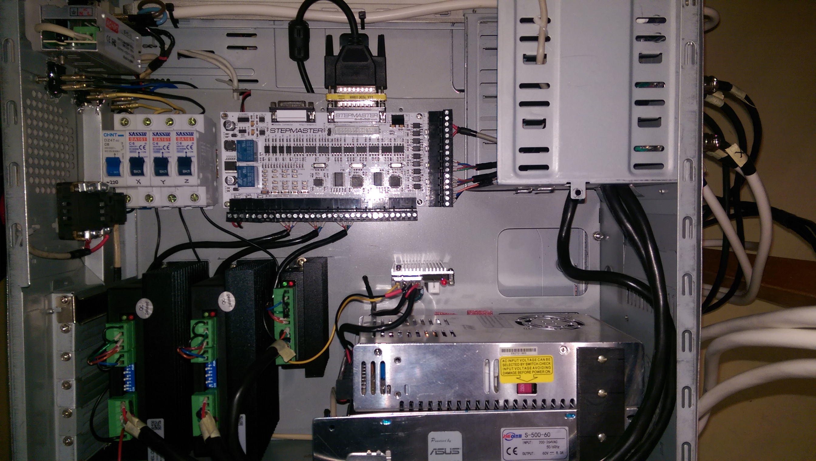 импульсник на 48-60 В. драйверы с подавлением резонанса на соот-щее напряжение, моторы надо низкоиндуктивные. lpt через степмастер. шпиндель кресс, что-то серьезное не потянет станок.