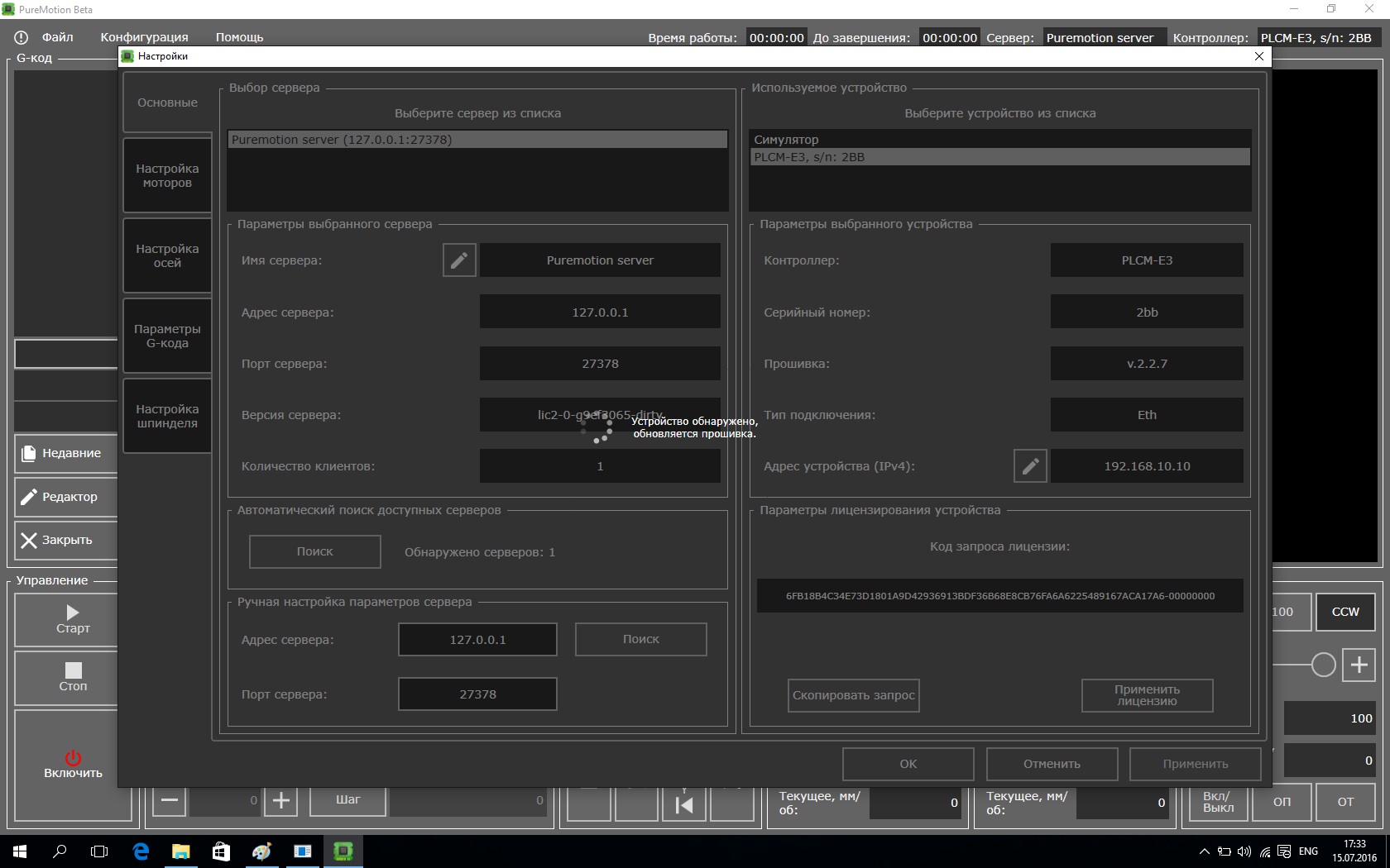 Скажем так - никакого дополнительного софта для ПМ я не устанавливал. Стоит вин10х64, мач3 с плагином plcm был установлен ранее.Argentum47 писал(а):Т.е никакого софта для PLCM как в инструкции не установлено и запускается? дотнет и с++ либы стоят как в требованиях, но как только находит сервер - вылет.