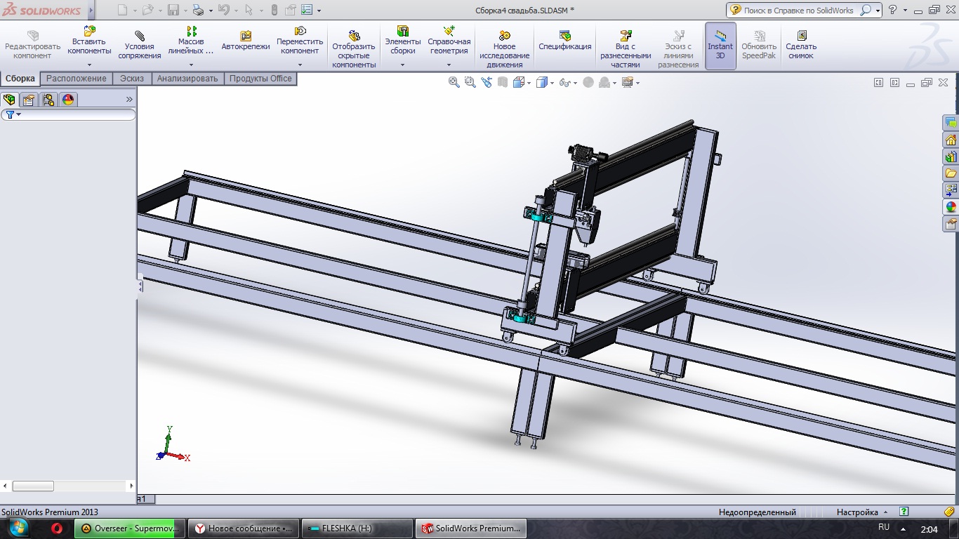 Портал вообще не движется, за счет малого рабочего поля 3200х1600 головка во все углы достает. Фактически станок с габаритами 6500х3500, это не удобно, но это проще чем городить то что я ранее хотел, попробую этот вариант сначала.