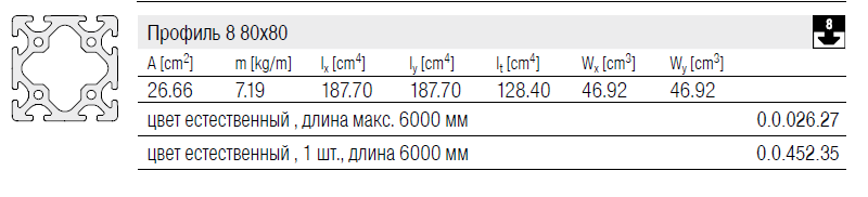 0.0.026.27 Profile 8 80x80, natural – 56,77 EUR без НДС за метр;