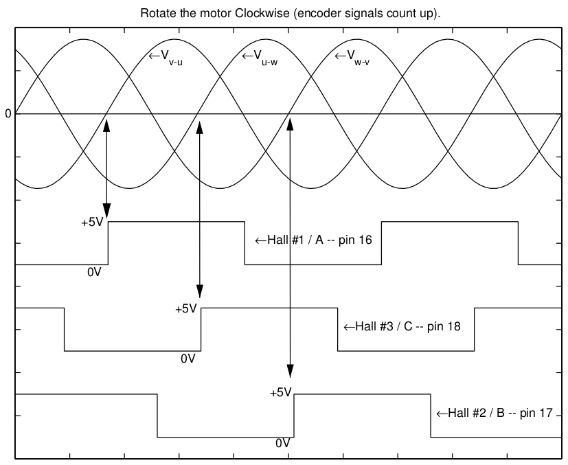 я исхожу из предположения, что сигнал енкодера U показывает положение ротора при включенной фазе U.