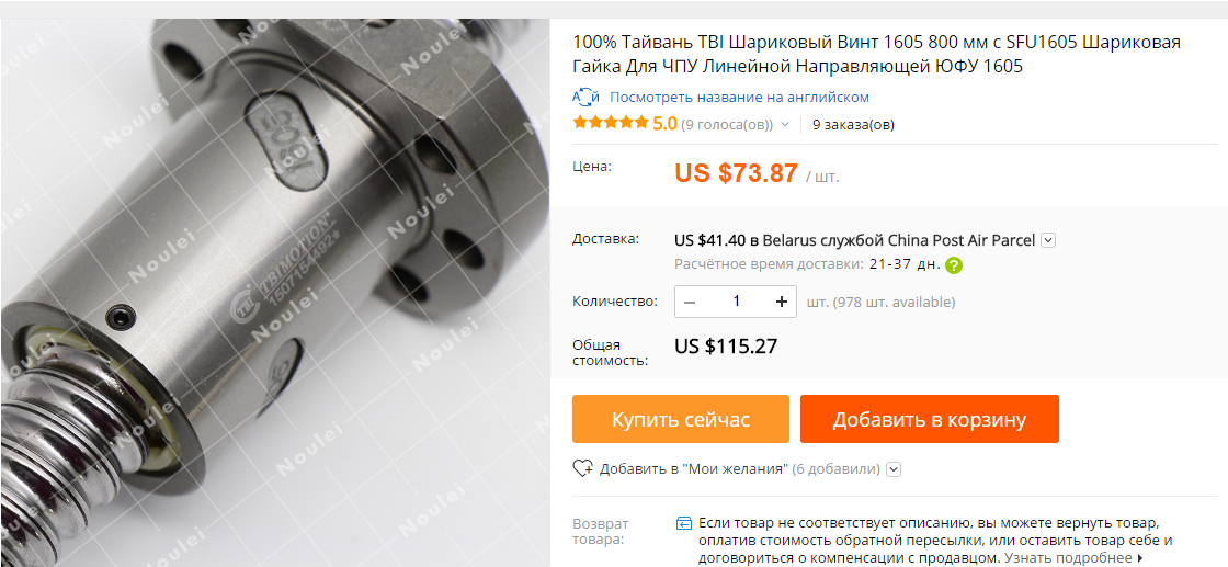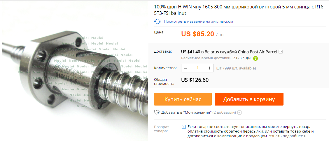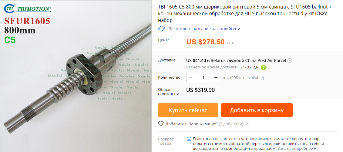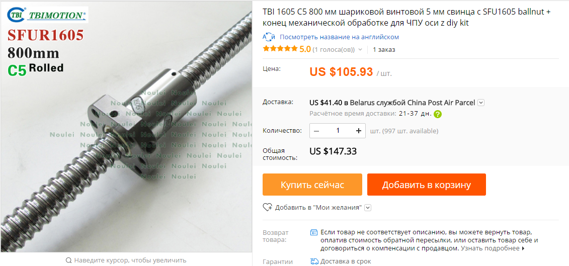 Я ранее взял у этого продавца на ось Z TBI винт С5 класса шлифованный. Очень нормальный винт. Так размер всего 250мм за 160 американских.