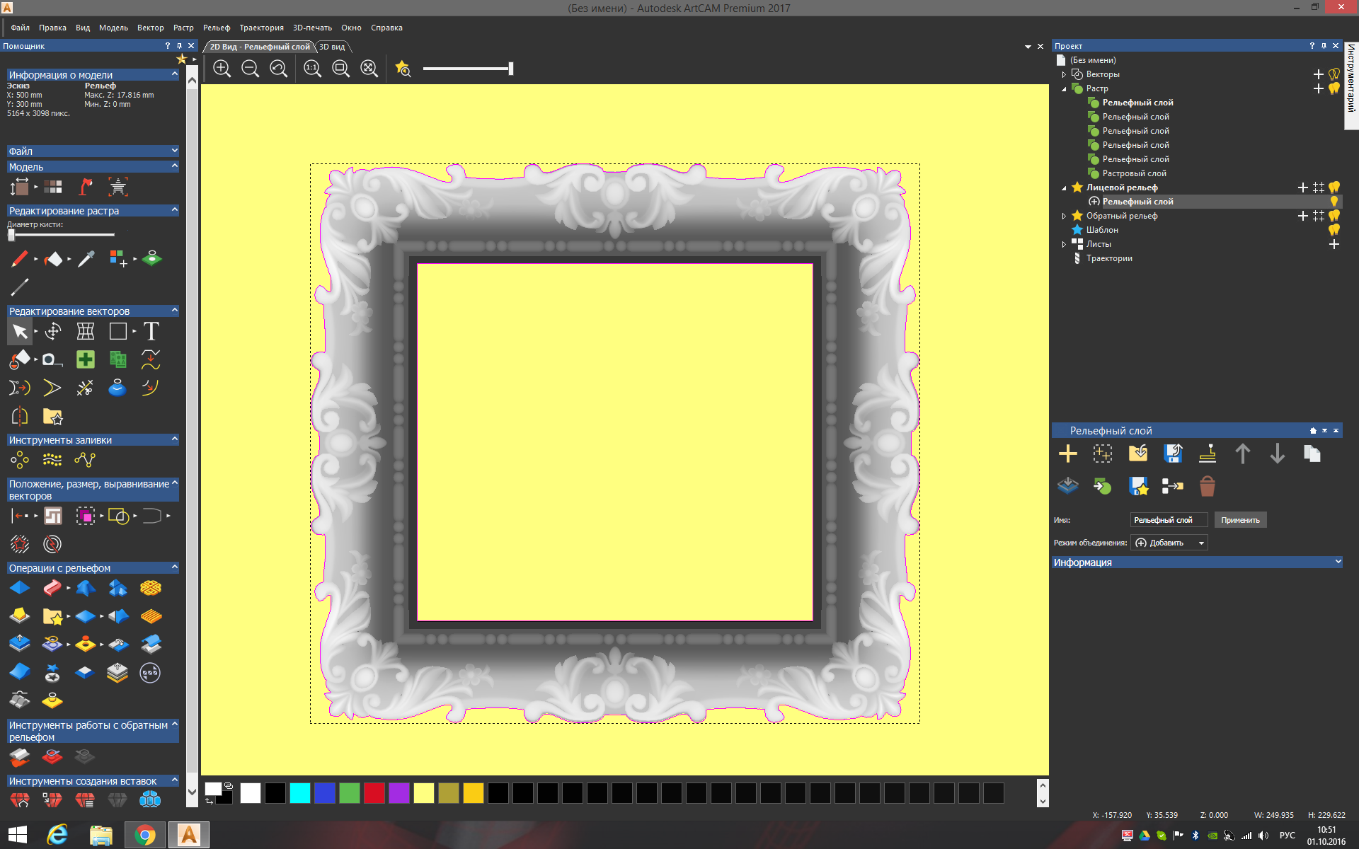 Люди добрые обратно я с поклонам. Подскажите есть stl модель резной рамки как сделать так что бы внутри не резало а ток рельеф. Зарание благодарю.