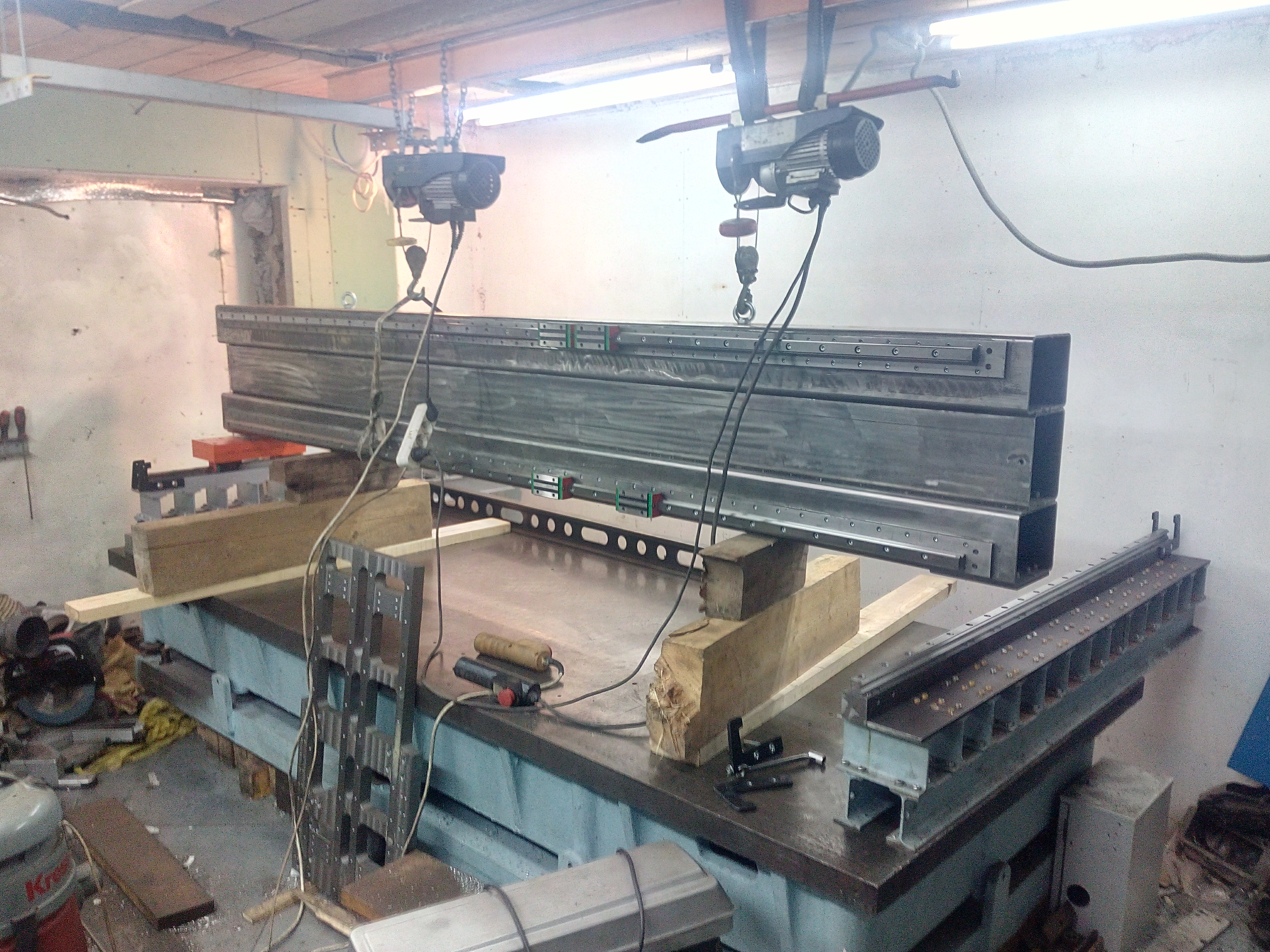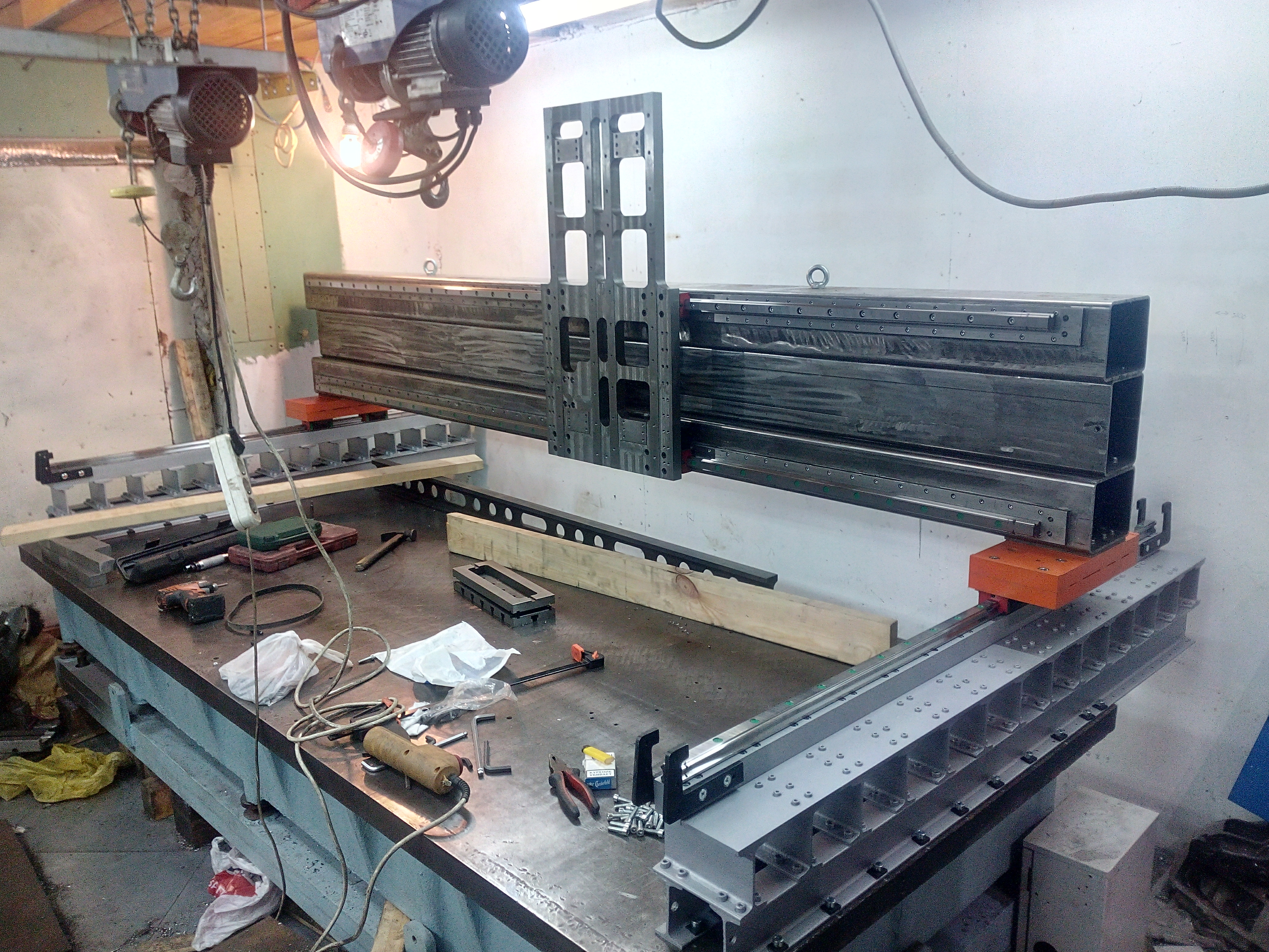 Изначально рассматривался вариант сборки новой балки портала и выправлением плоскостей под рельсы, но совершенно случайно наткнулся на объявление о продаже небольшой поверочной плиты. Небольшой потому как ее размер был крайне мал для использования ее в качестве основания станка желаемого размера. Поразмыслив немного сделал для себя выводы которые говорили о том что большой станок мне не нужен, т.к. он займет всю площадь и места под материал и готовые изделия не останется. В итоге было пряно компромиссное решение уложиться в отведенные 6 кв.м. площади для установки станка с возможностью в будущем удлинить одну из осей.