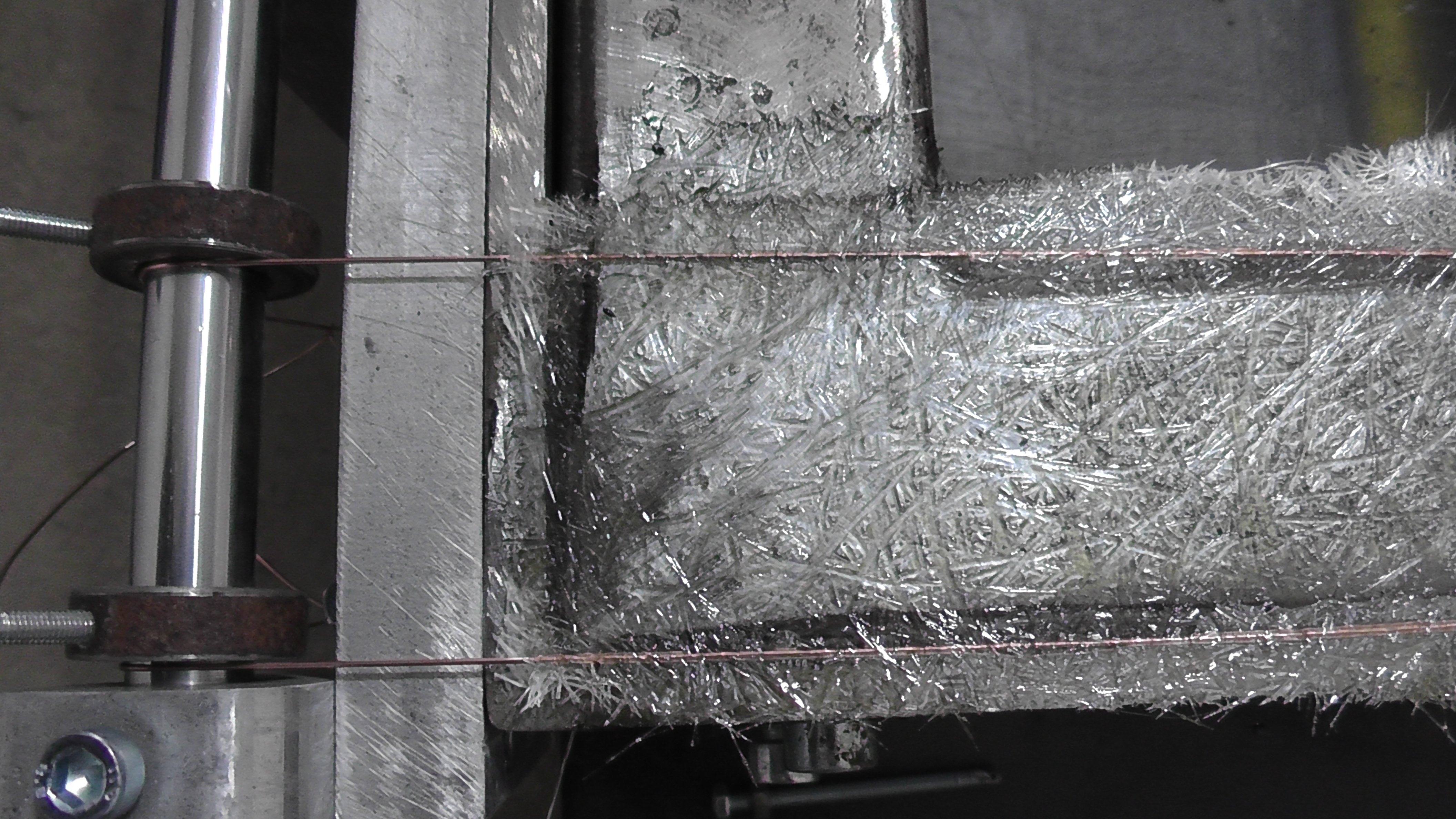 Если вы заметили на фото на приспособе натяжители проволока как струна. под проволокой полимер и стекломат куда провисает?