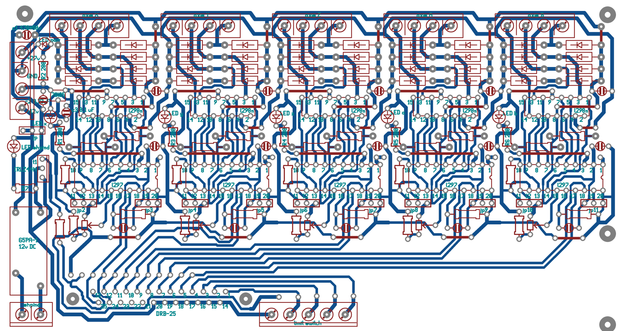 Контроллер и драйвер двигателей лучше сделать отдельнымми платами. Если нужно, то печаткой и схемой могу поделиться