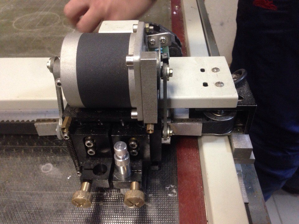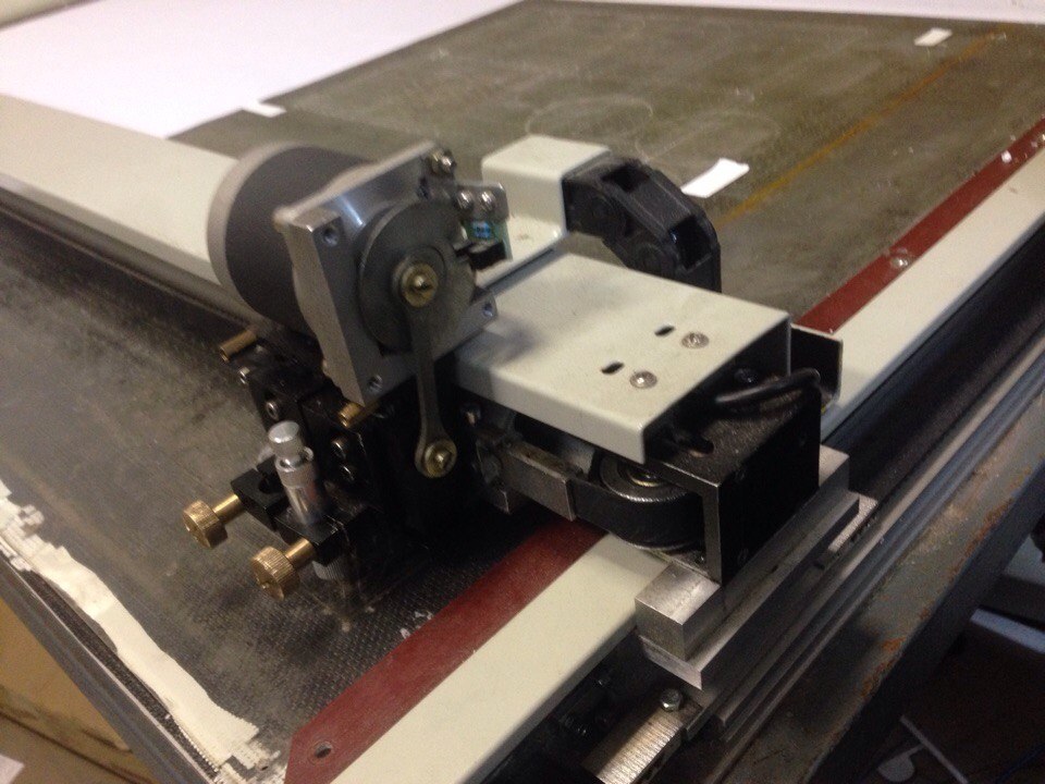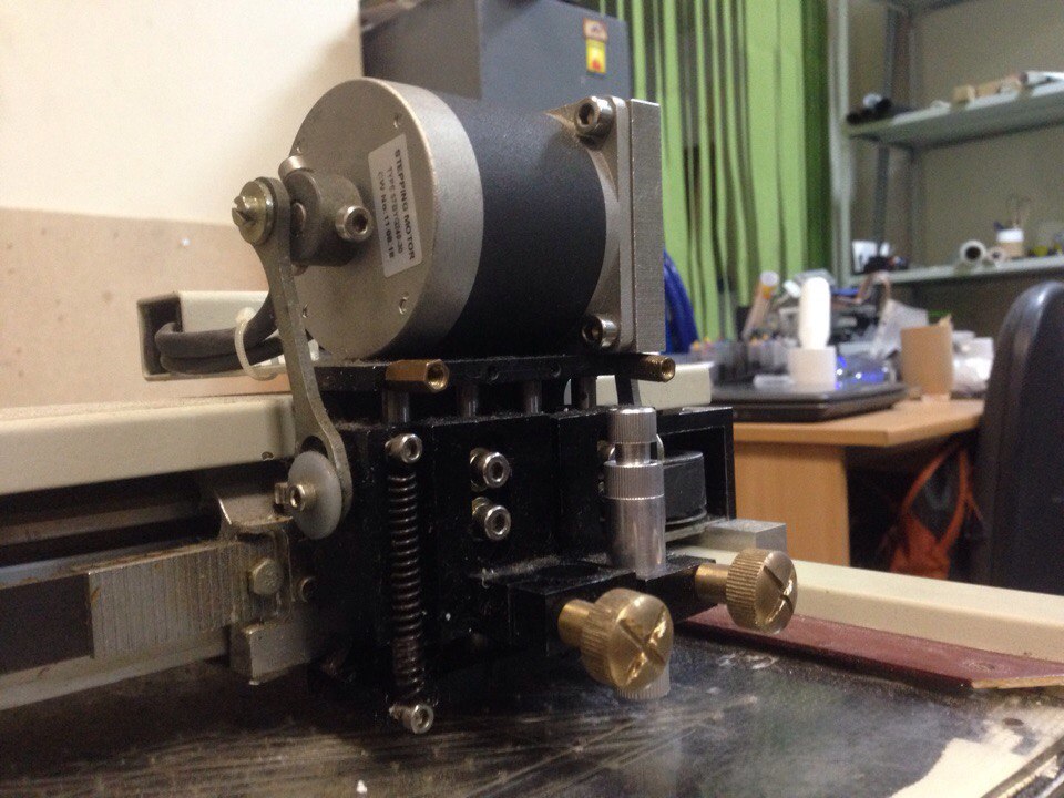 Сие творение это китайский режущий плоттер. Режет он ножиком диаметром 2 мм. У станка 2 держалки под инструмент. В левой руке он держит ножик, я им режу бумагу картон, тонкий пластик, пэт и прочее. Хотелось бы дать ему во вторую руку фрезерную насадку для раскроя пластика 3-5 мм. (а может и 10 если техника позволит) и композитного материала 3-5 мм.