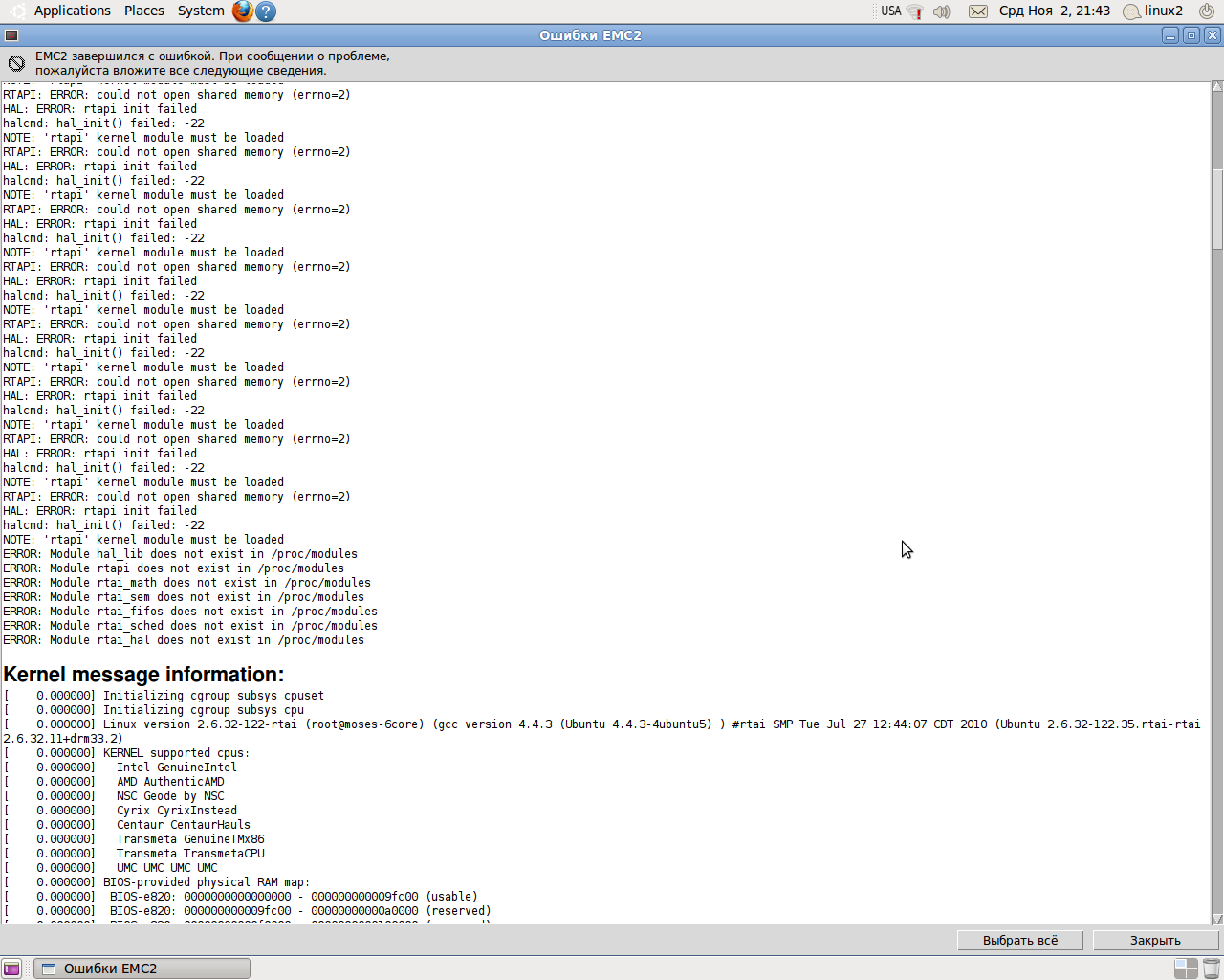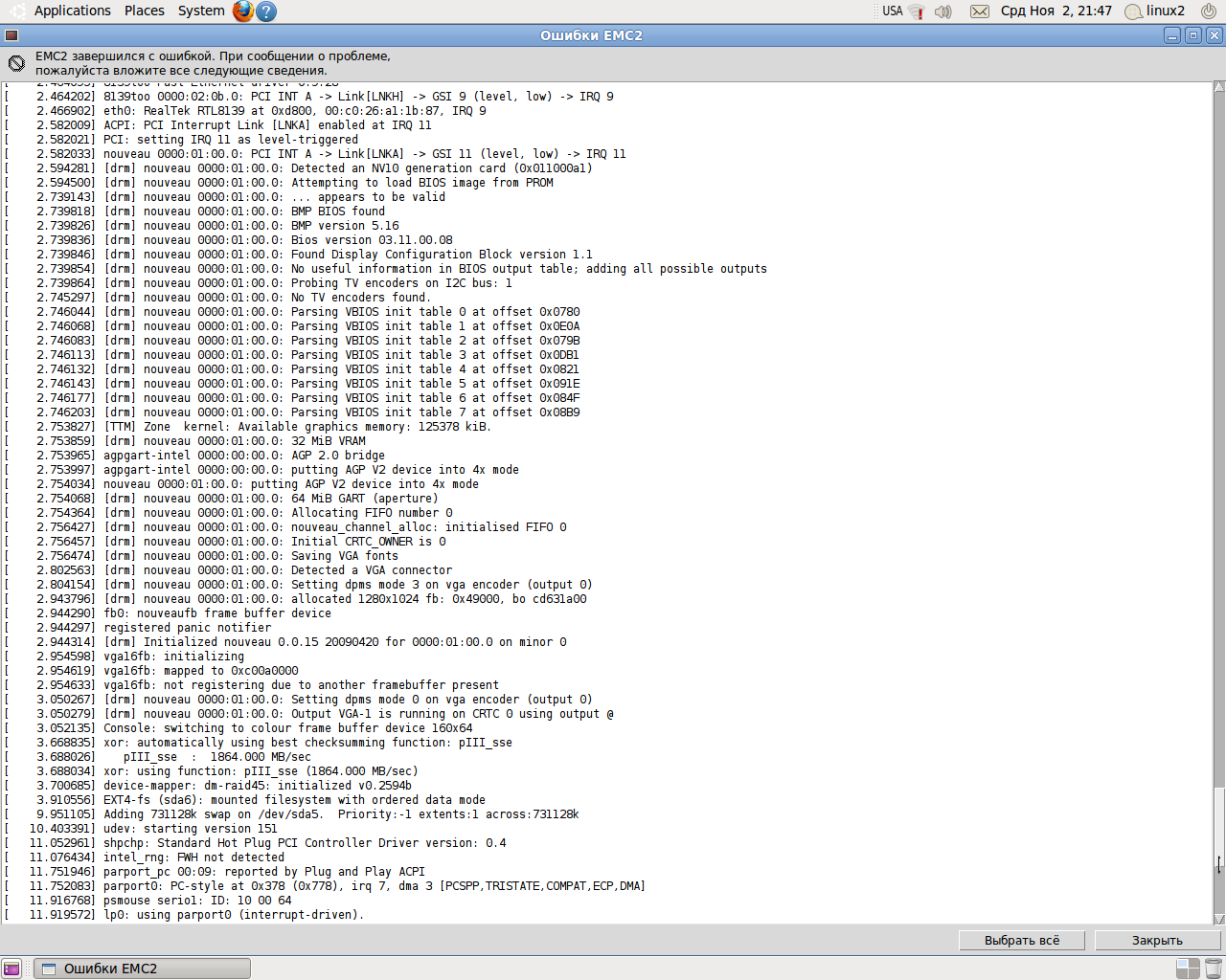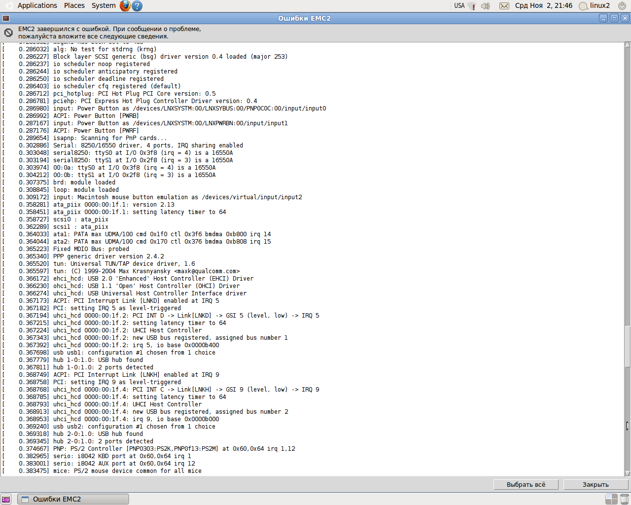 Запускаю EMC2, выбираю любую конфигурацию, начинает грузится ... и :cry: завершается ошибкой: