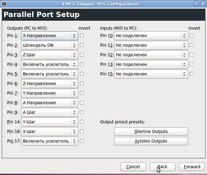 Re: Помогите настроить контроллер TB6560AHQ 4 Axis под emc