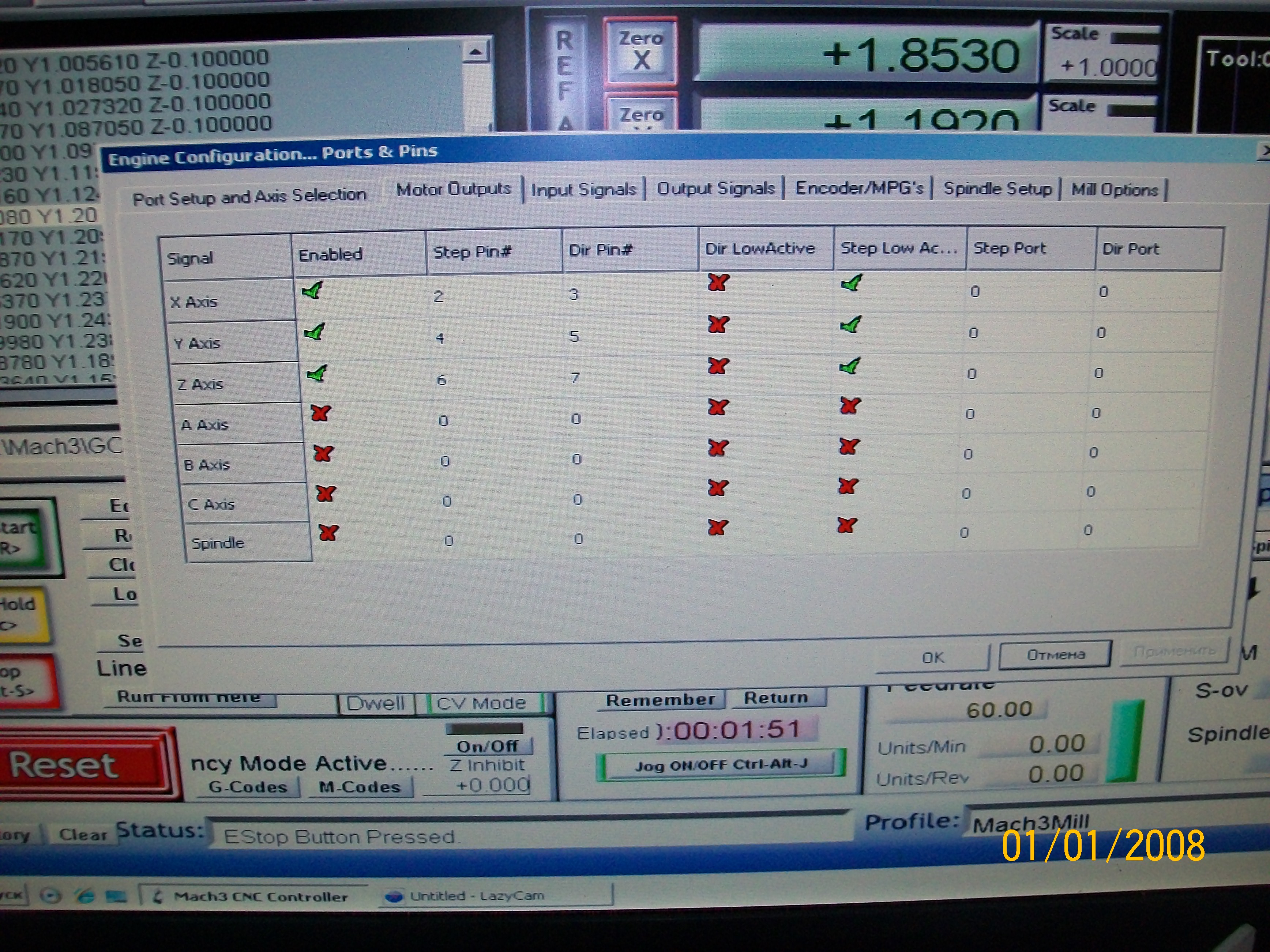 Установил новую винду, после установки Mach3 перегрузил Пк, настроил Mach3 как на фото