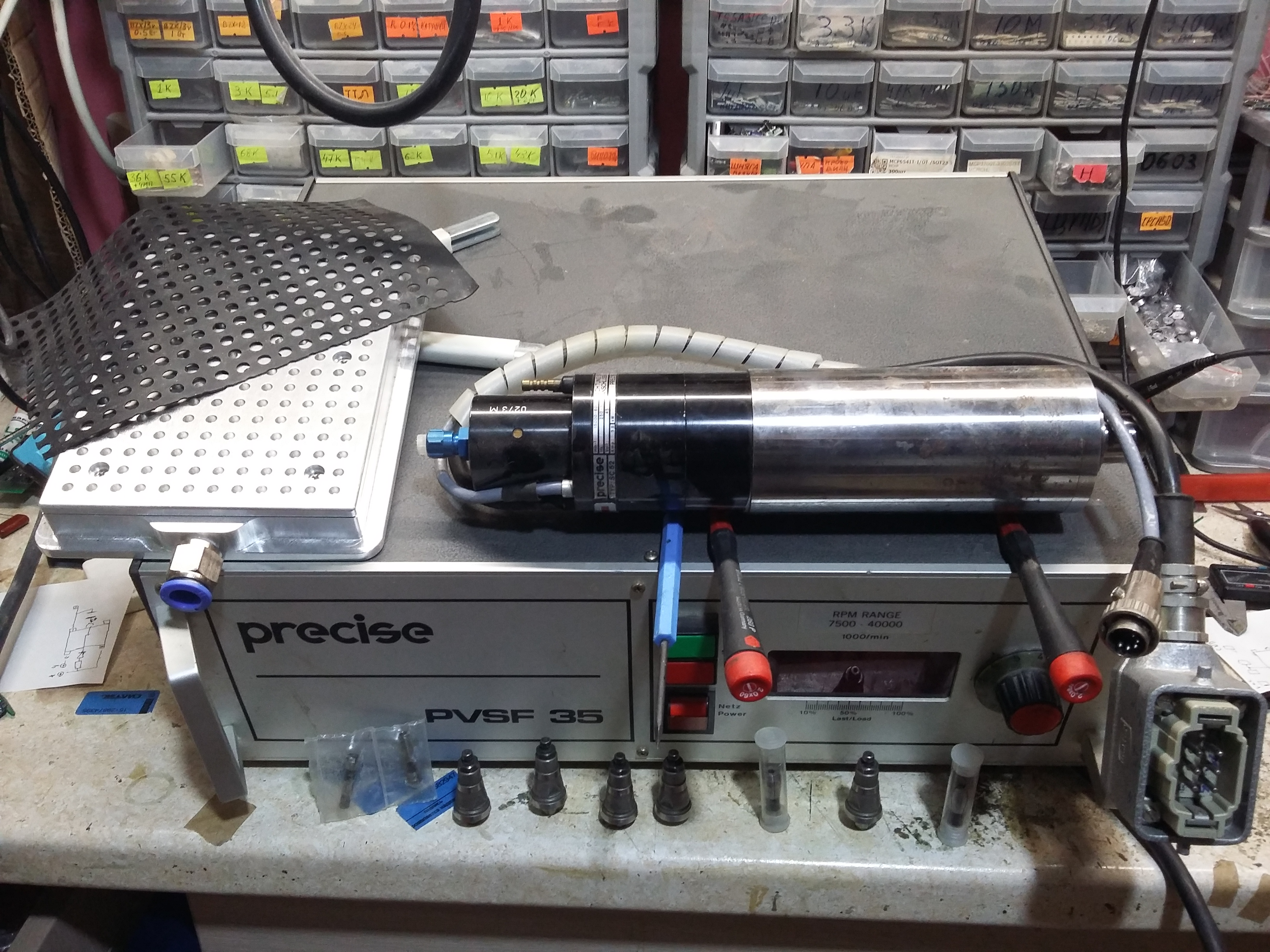-ТОже любопытно, есть ли автосмена с электроприводом для цанг до 3.175 мм. Пока видел только для Kressa решение с воздушным приводом 8 Бар. Но KRESS до 8 мм цанги поддерживает ,что наврено избыточно.