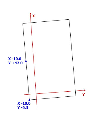 Например, есть прямоугольная заготовка, повернутая на неопределенный угол. Известно, что левая грань имеет координату по X -10.0: