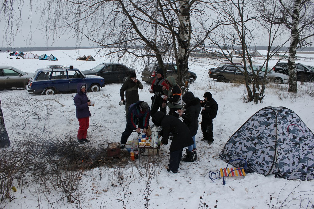 на улице где-то +5 и по берегам реки лежит снег, вот такие мы чокнутые люди