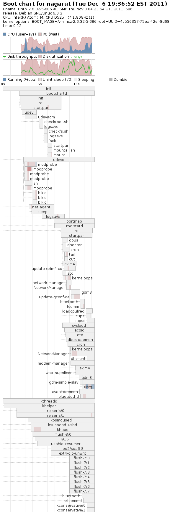 И потом смотрим png-шки в /var/log/bootchart. Только перезапустись сначала, чтобы он хоть что-то нарисовал.