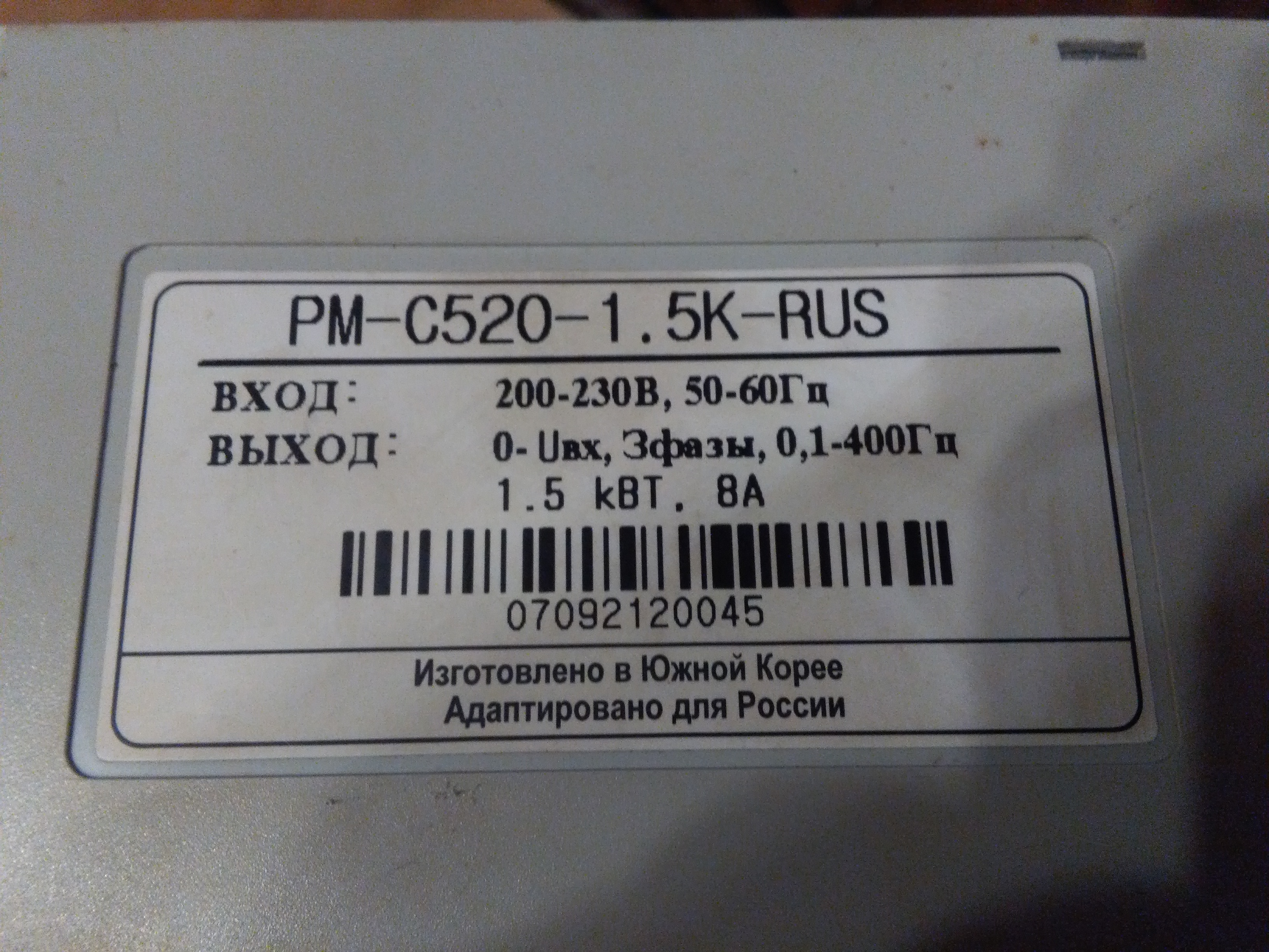 1ф 220в ---> 3ф 220в 1.5 кВт 0.1-400Гц. Векторный .пр-во Корея. Демонтаж нового оборудования.